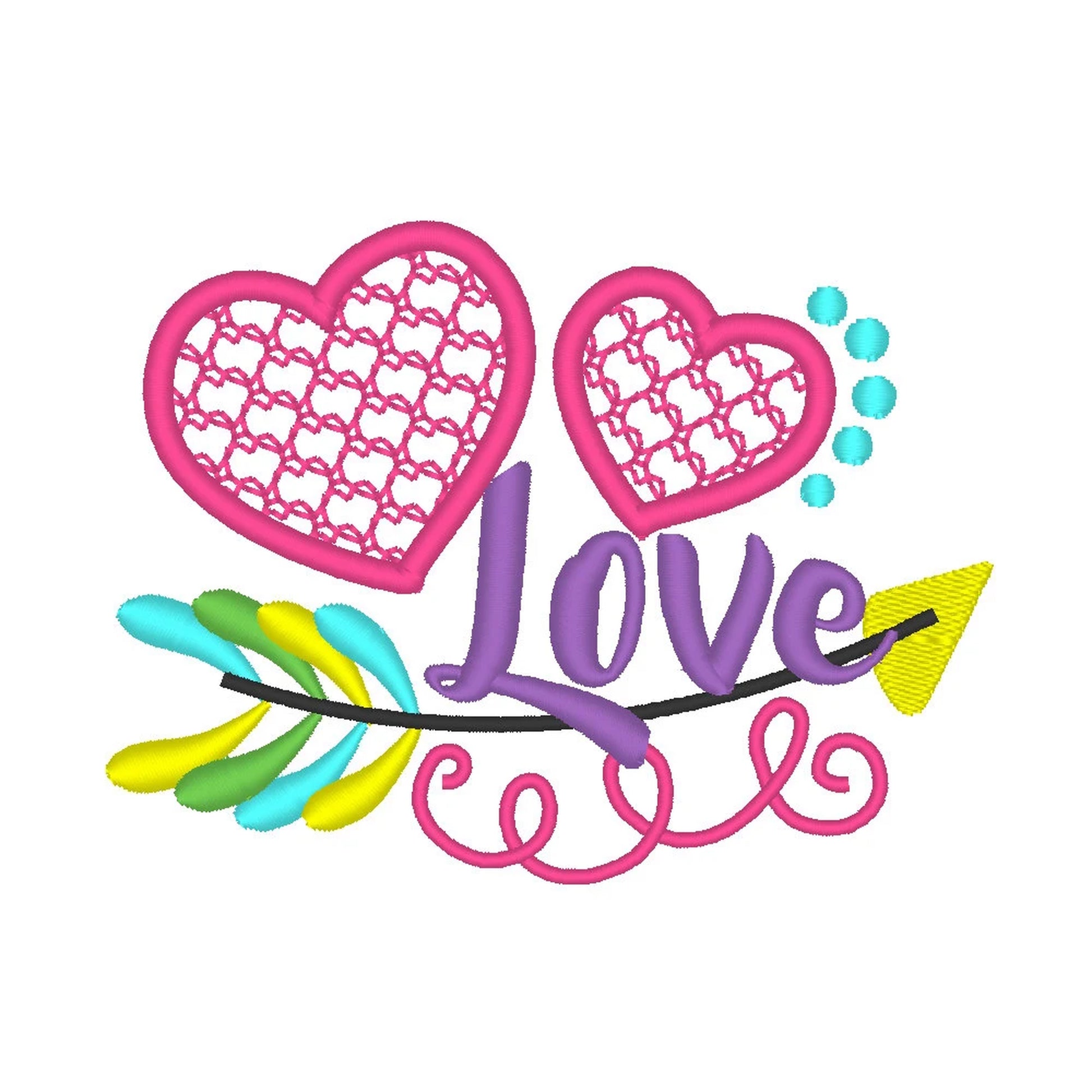Love Saying on Arrow with Hearts wild valentine heart Applique machine embroidery designs sizes for hoop 4x4 5x7 kids baby girls design