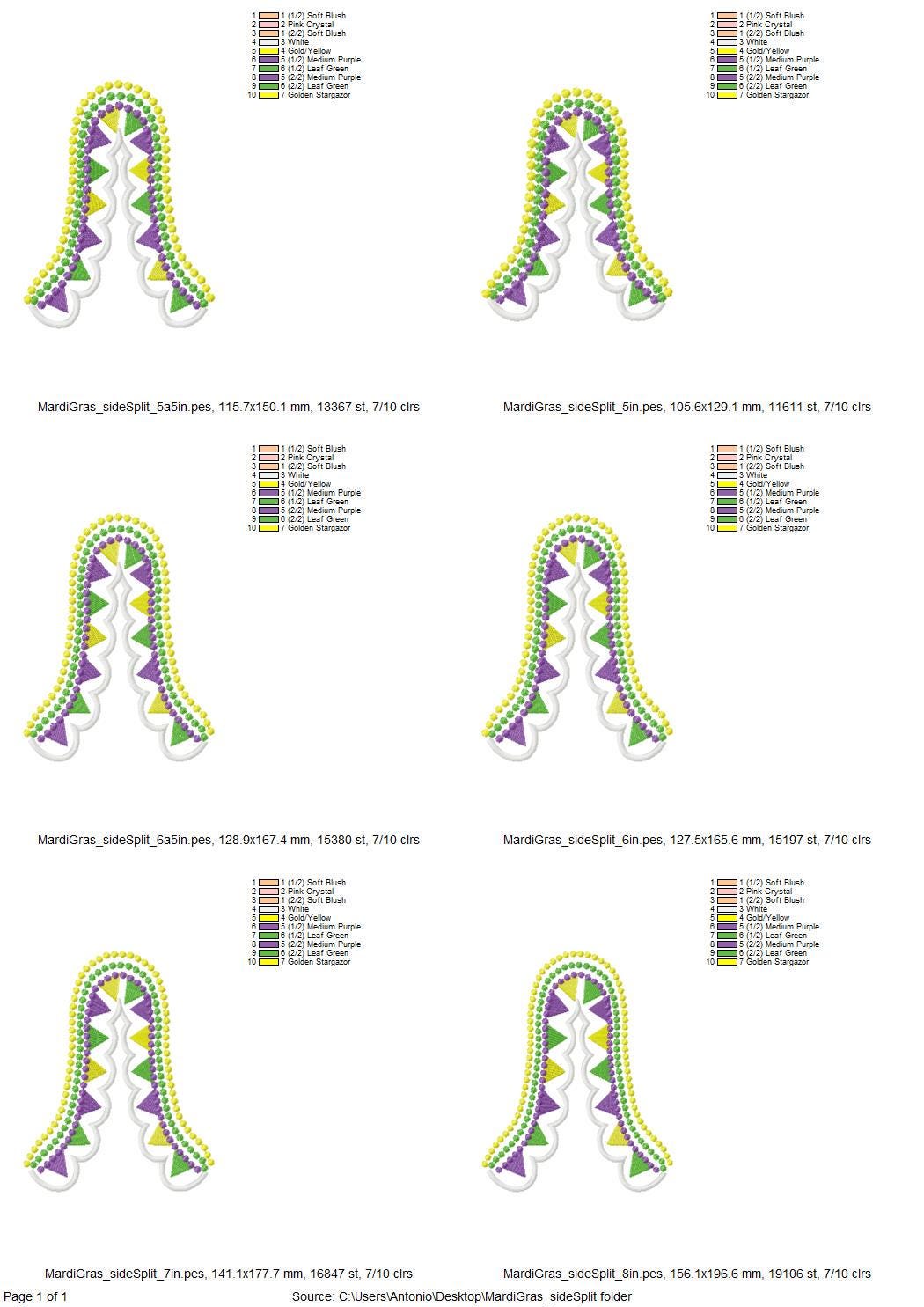This download includes machine embroidery designs in the sizes: 5", 5.5", 6", 6.5", 7", 8".