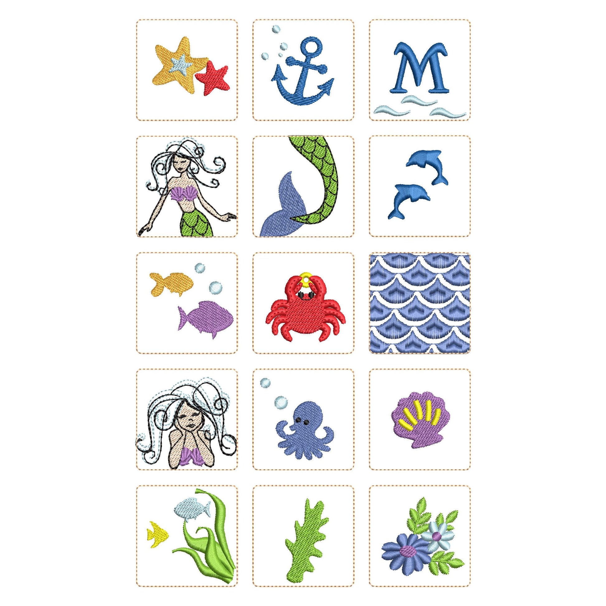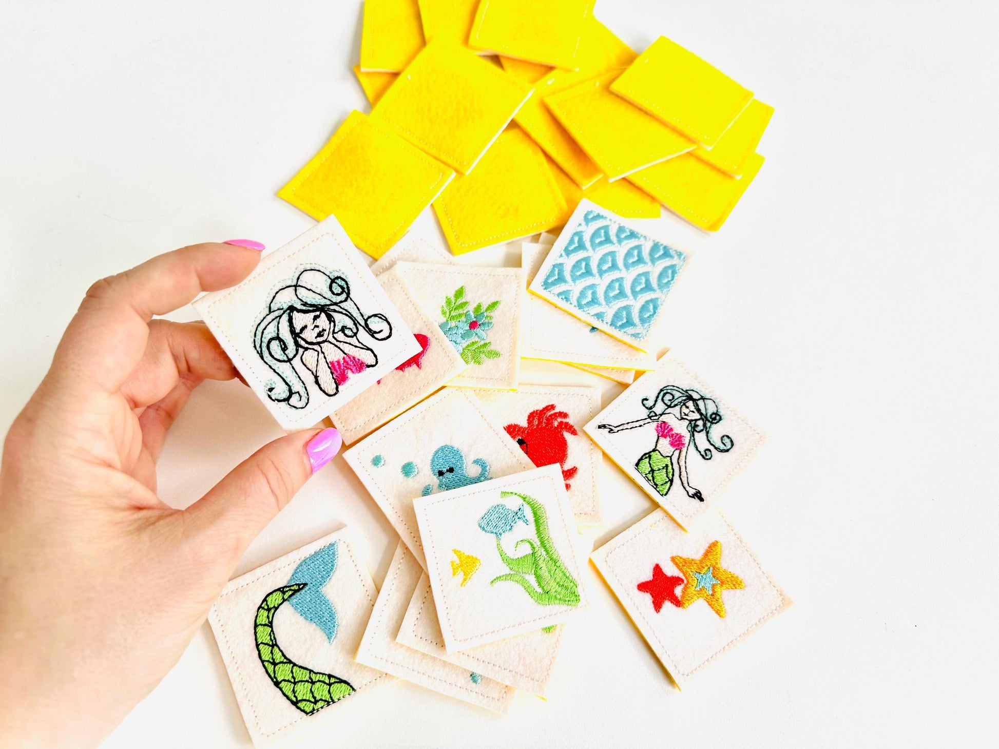 Memory game MERMAID Beach in the hoop machine embroidery designs download for hoop 4x4 5x7 and 6x10 kids girls matching game ITH gift idea This fun and summery matching game is perfect for kids - especially those who love the beach and mermaids!