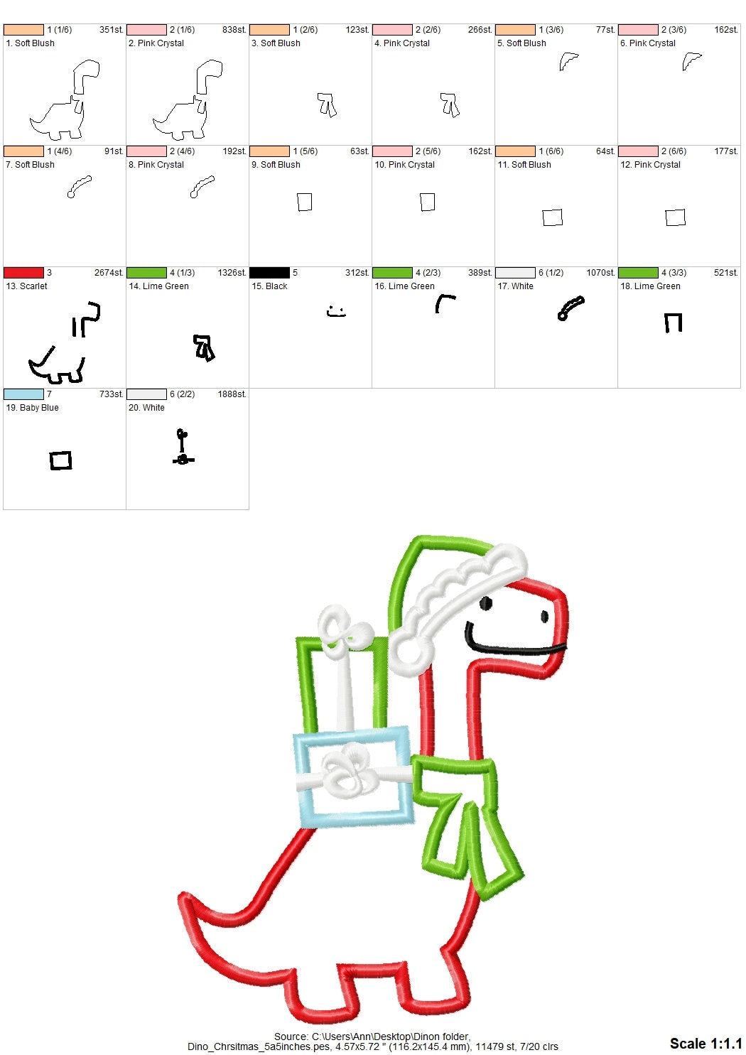 Merry Christmas Dinosaur applique, dinosaur with Santa hat kids boy machine embroidery designs in sizes 4, 5, 6, 7, 8 inches