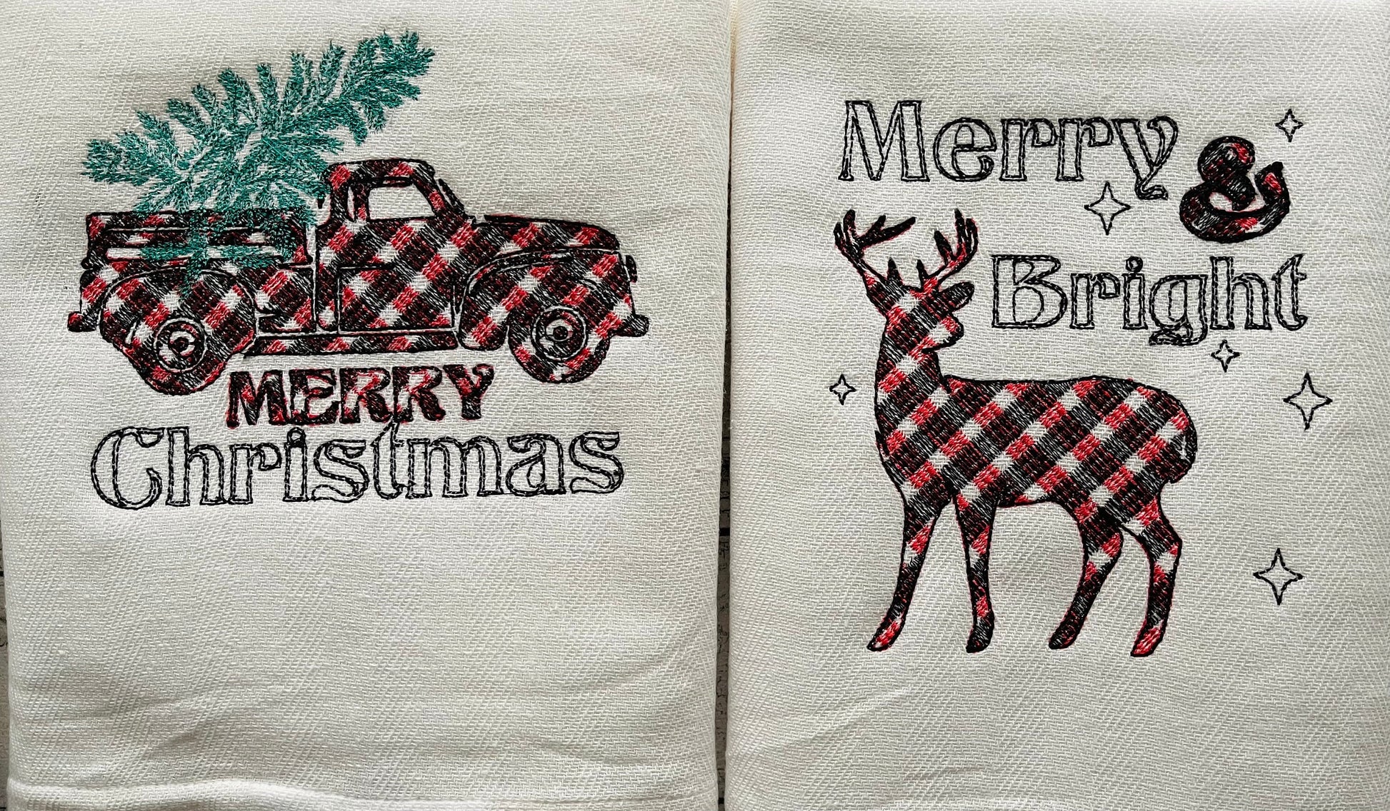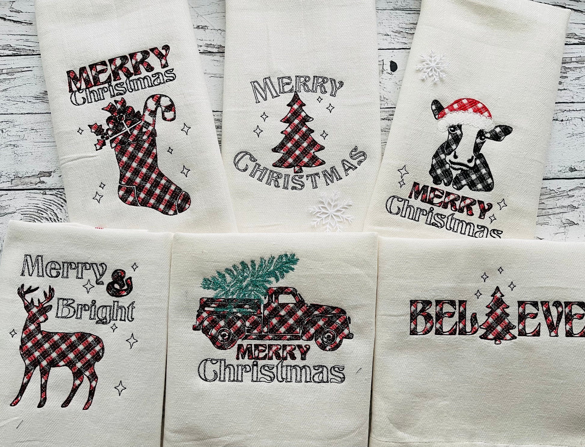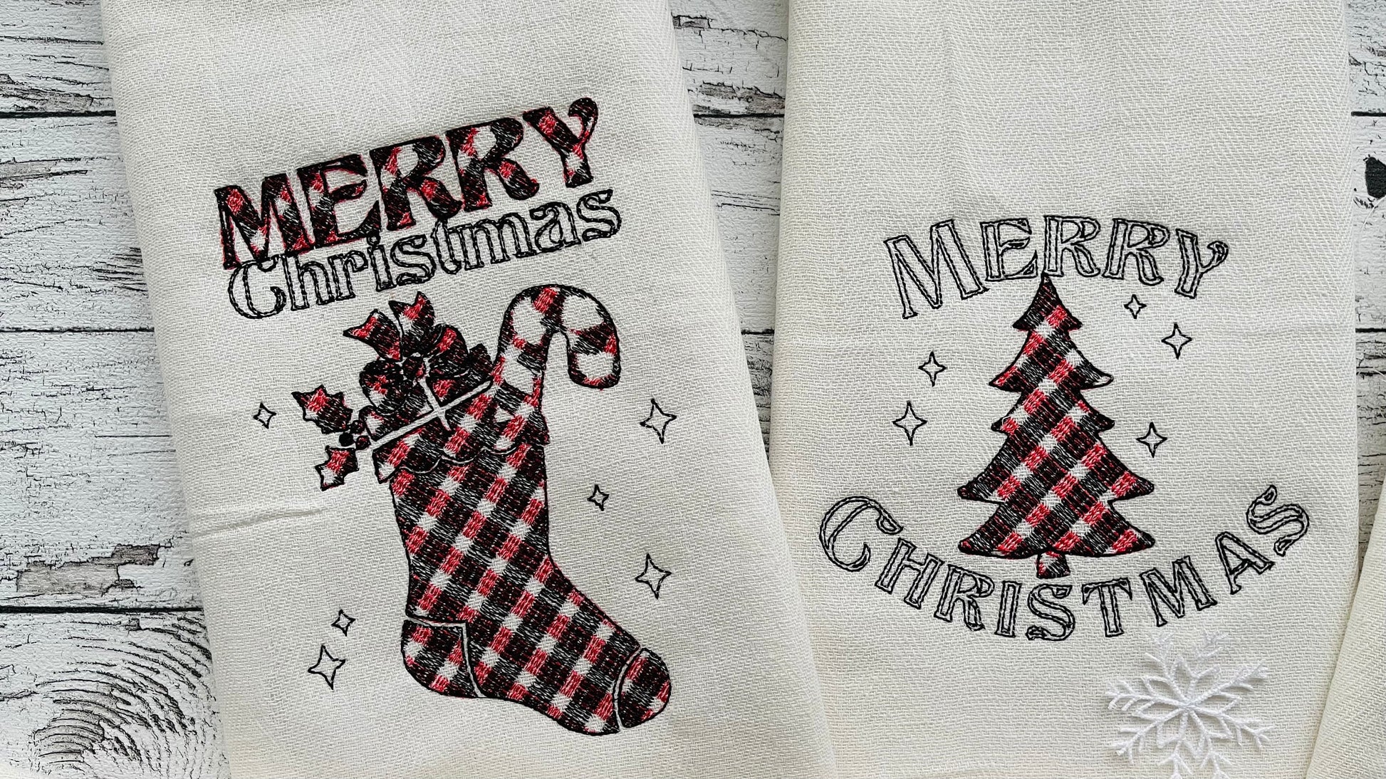 Merry Christmas saying gingham tartan check old fashioned classic Kitchen dish towel or Pillow machine embroidery designs hoop 4x4 5x7 6x10