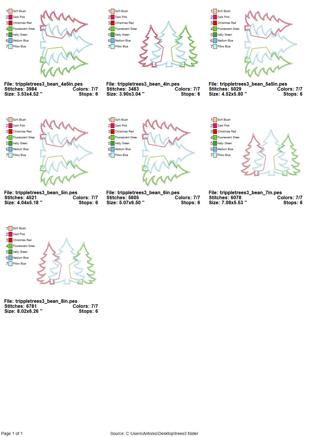 Merry Christmas Woodlands Tree Trio Applique Triple bean stitch Raggedy edge Applique designs 3 Christmas tree in a row