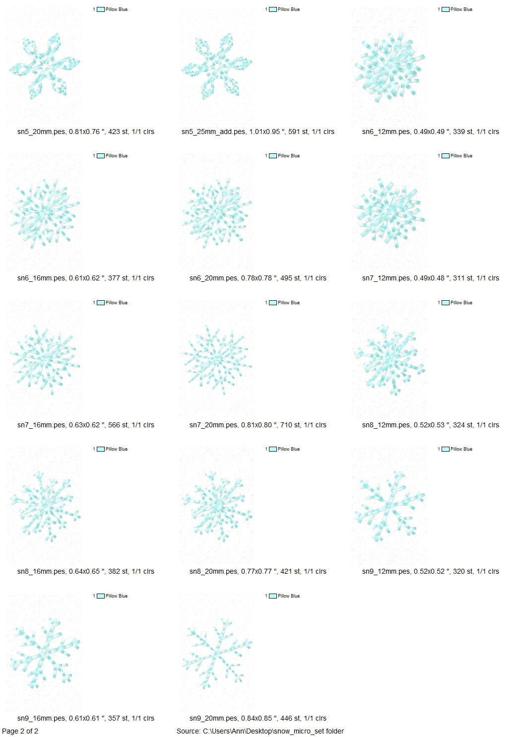 Micro mini small 8 single Snowflakes machine embroidery designs, files in mini sizes 0.45, 0.6, 0.8 inch small winter snowflake set of 8