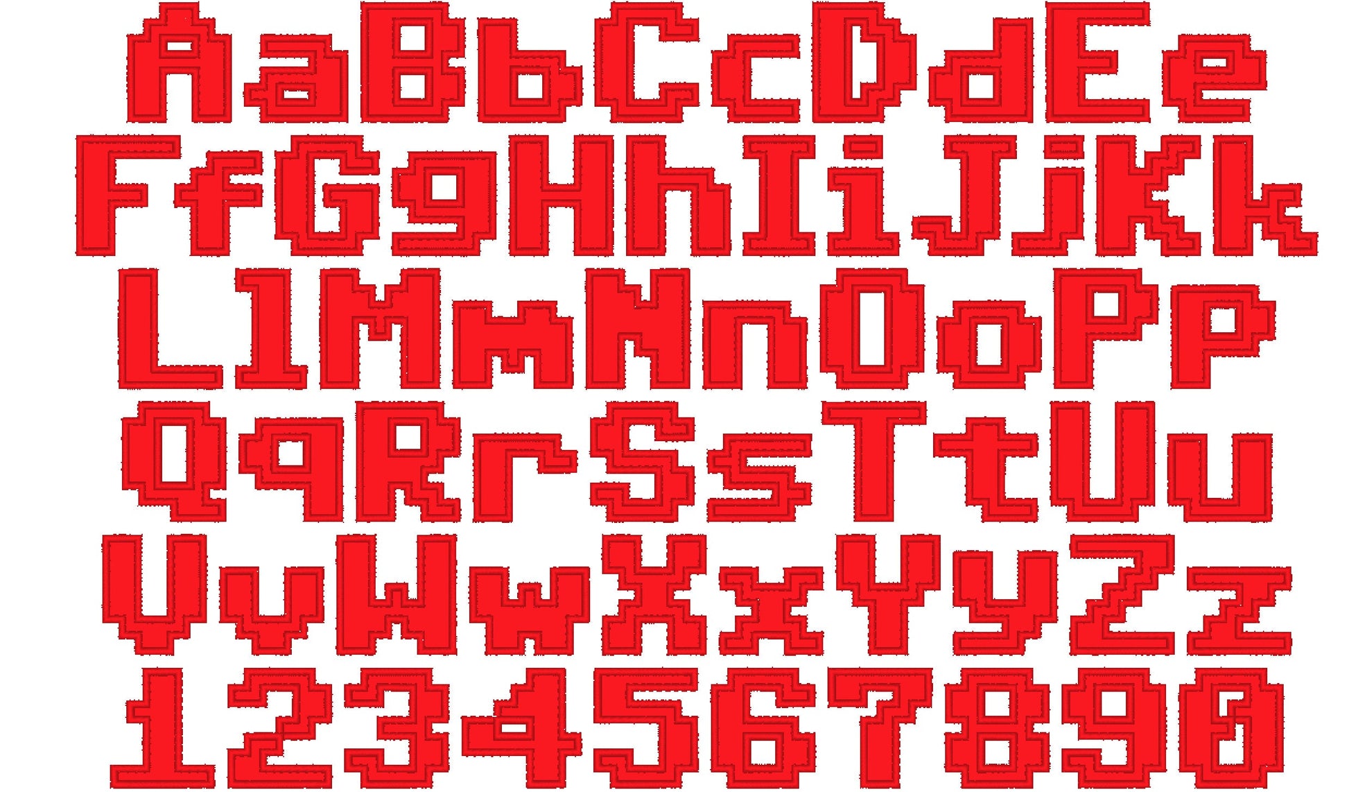 Miner Bricks pixel Font machine embroidery applique alphabet, monogram, machine embroidery design, brick letters, brick font for kids boy