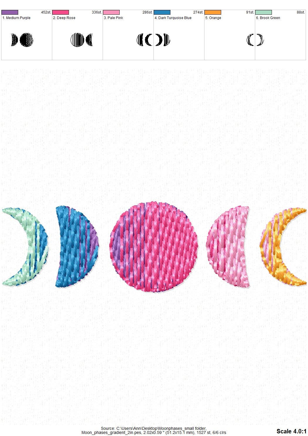 MINI Iridescent moon phases four principal lunar phases: new moon, first quarter, full moon, and last quarter machine embroidery designs