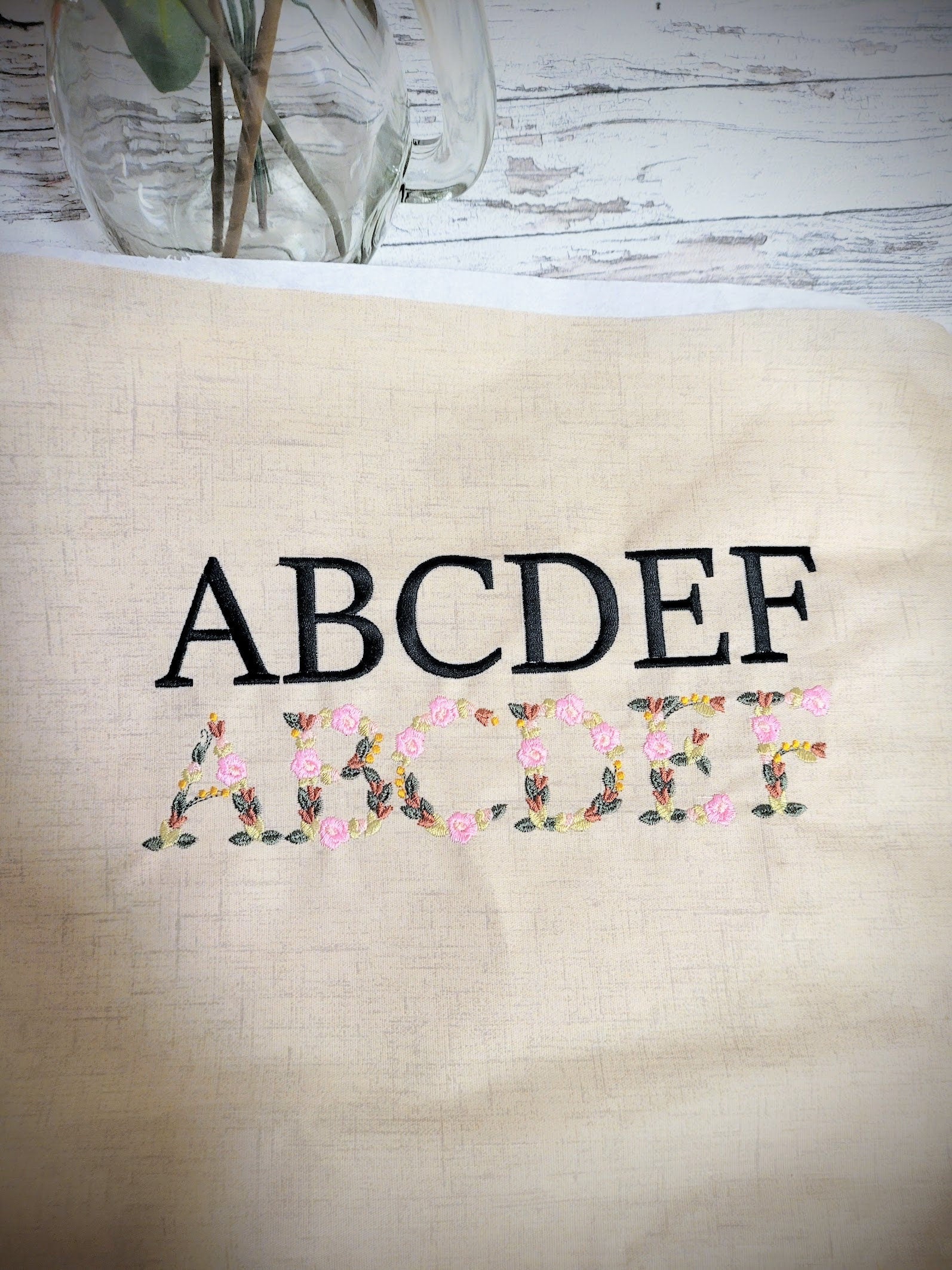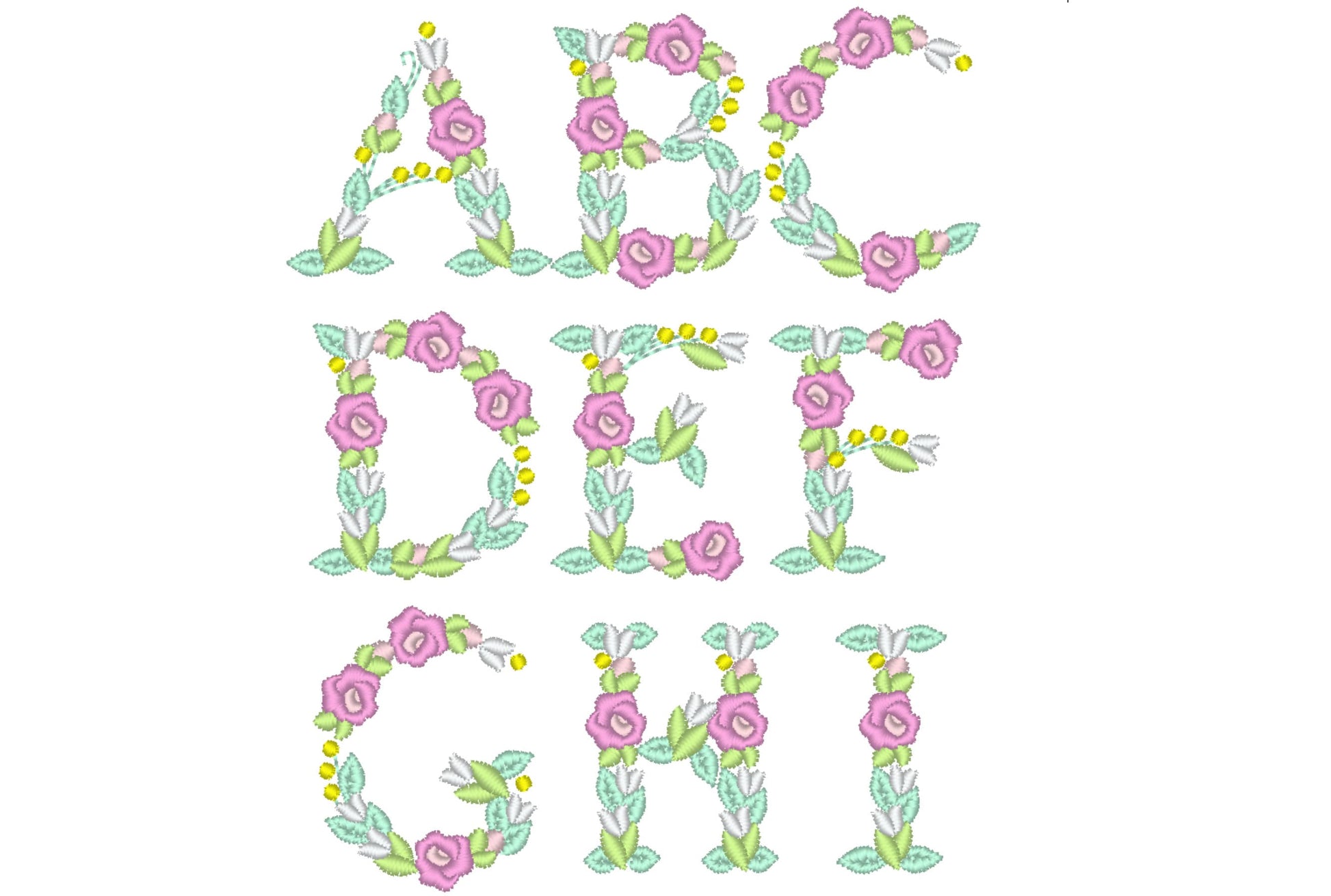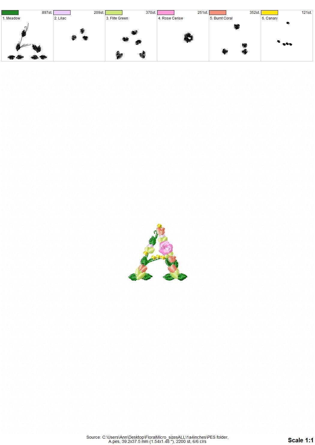Mini roses floral font alphabet flowered monogram liberty fashioned flower Font machine embroidery designs sizes 1.4, 1.6, 1.8, 2in, BX incl