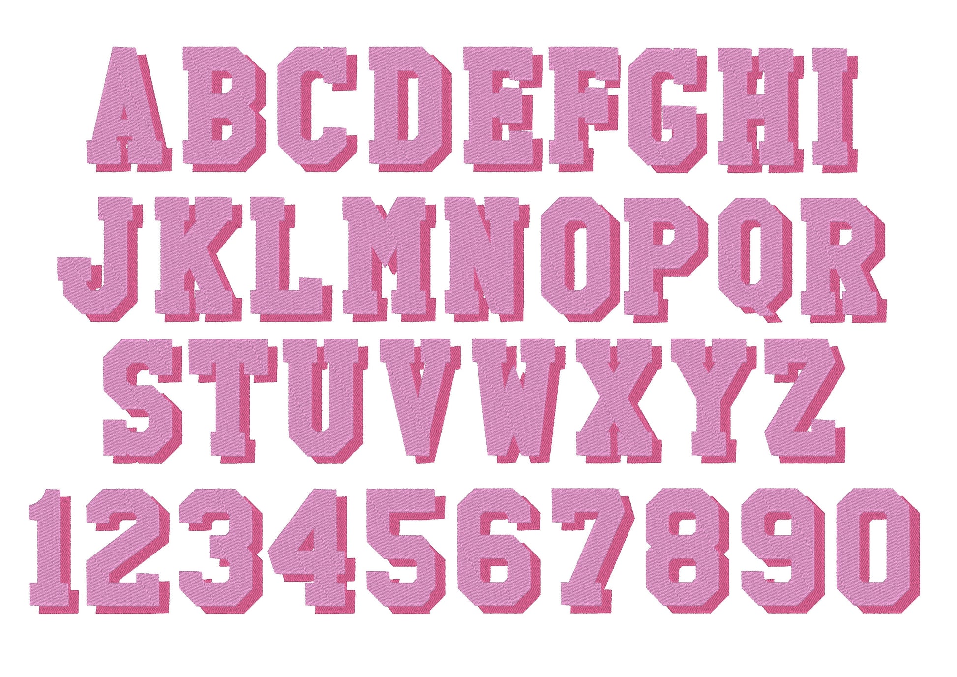 MINI Varsity Collegiate block type Shadow Font fill stitch machine embroidery designs sport letters numbers with shadow BX font