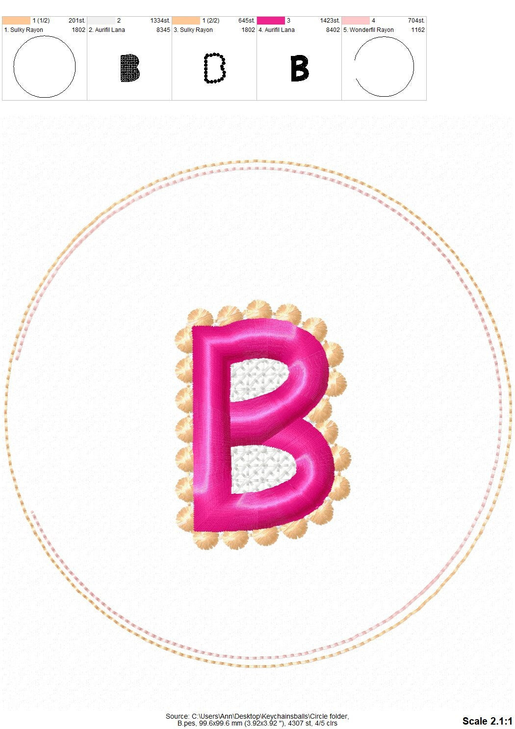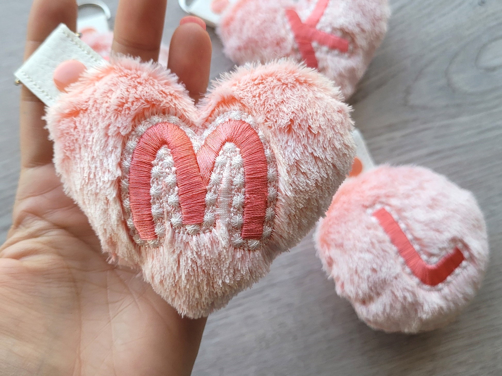 Minky fur fluffy Ball and Heart key fob snap tab keychain charm Monogram A-Z in the hoop ITH keyfob bag tag machine embroidery designs 4x4
