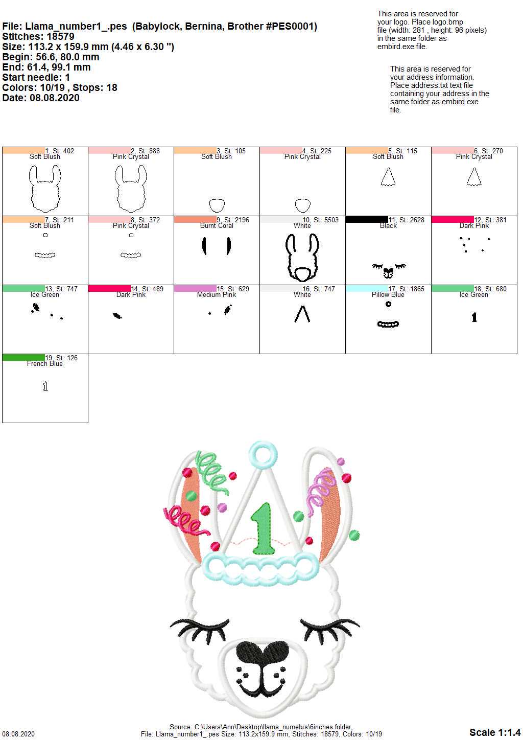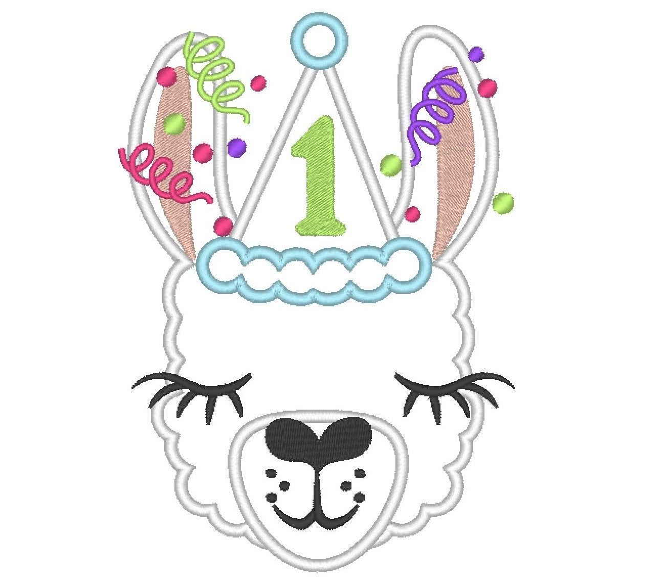 Number 1 first birthday Llama alpaca Birthday hat outfit llama with number ONE baby boy lama applique machine embroidery designs 5x7 6x10
