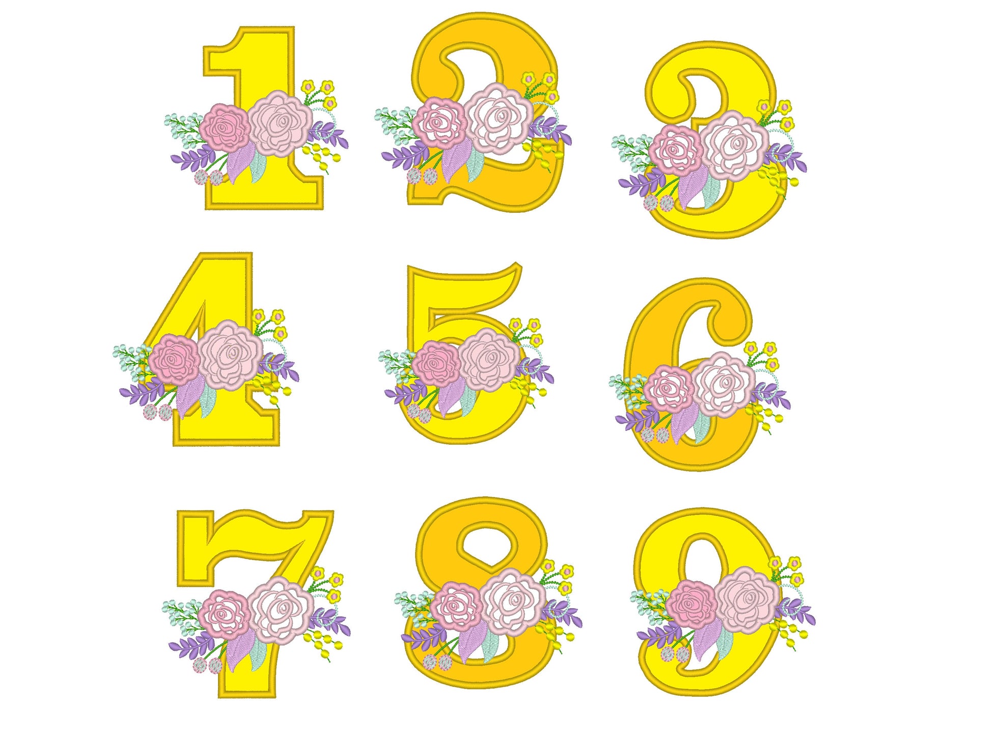Package price! Farm Birthday numbers 1-9 country style vintage french floral crown barn number roses bouquet rose embroidery designs