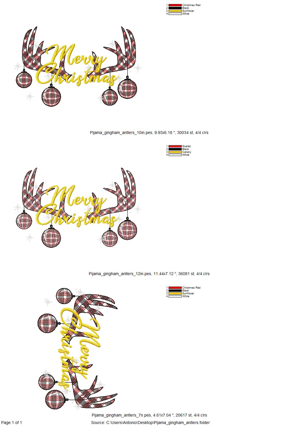 Pajama Christmas party Light stitch Antlers Deer Silhouette outline gingham tartan machine embroidery designs big sizes