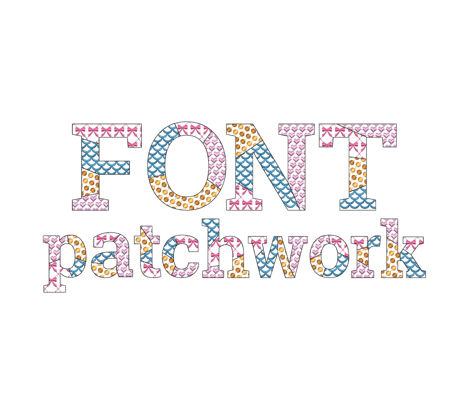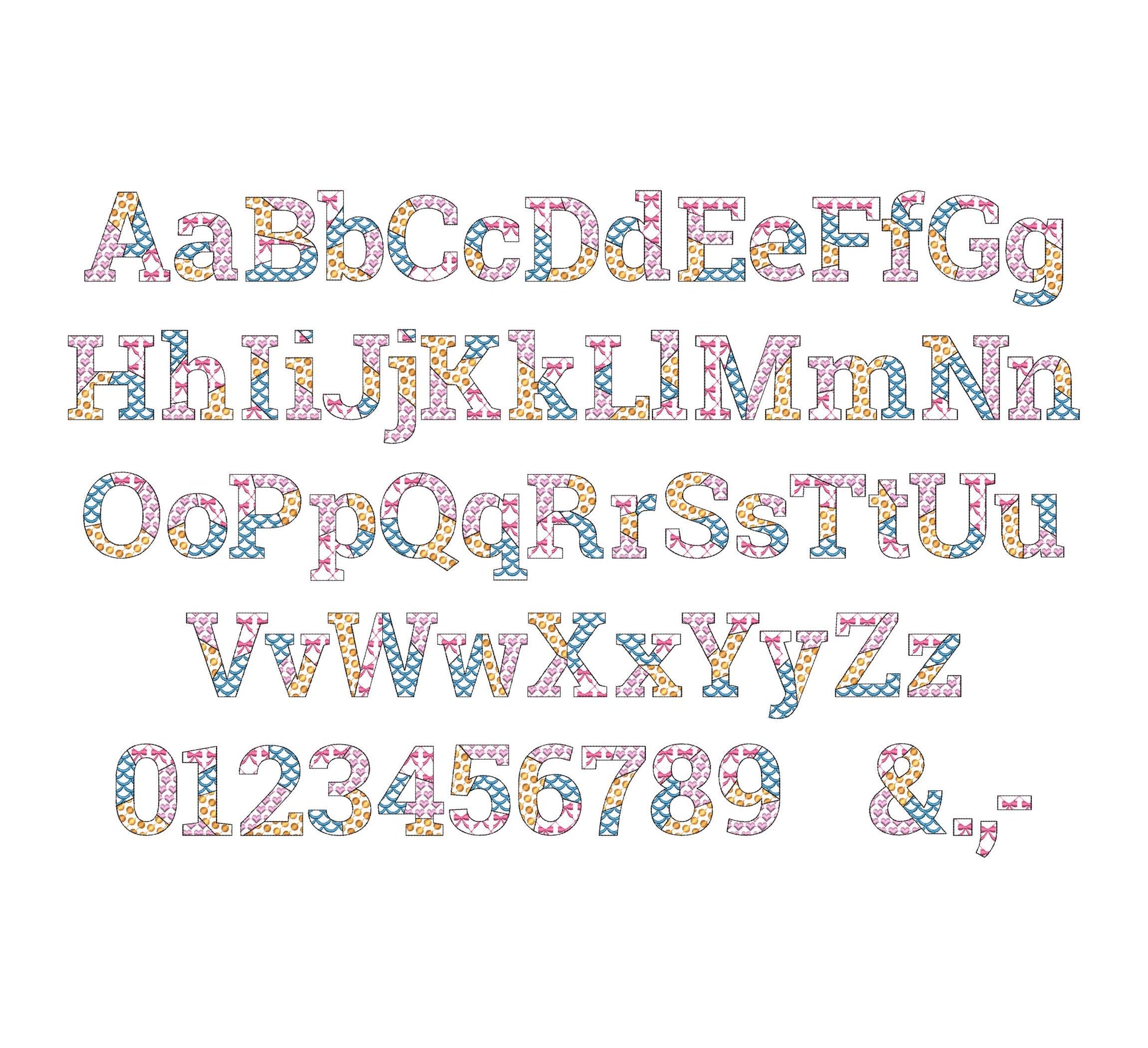 Patchwork Block FONT Summer patterned alphabet monogram letters machine embroidery designs sizes 1.8 up to 4 inch girly tiny bow heart dots