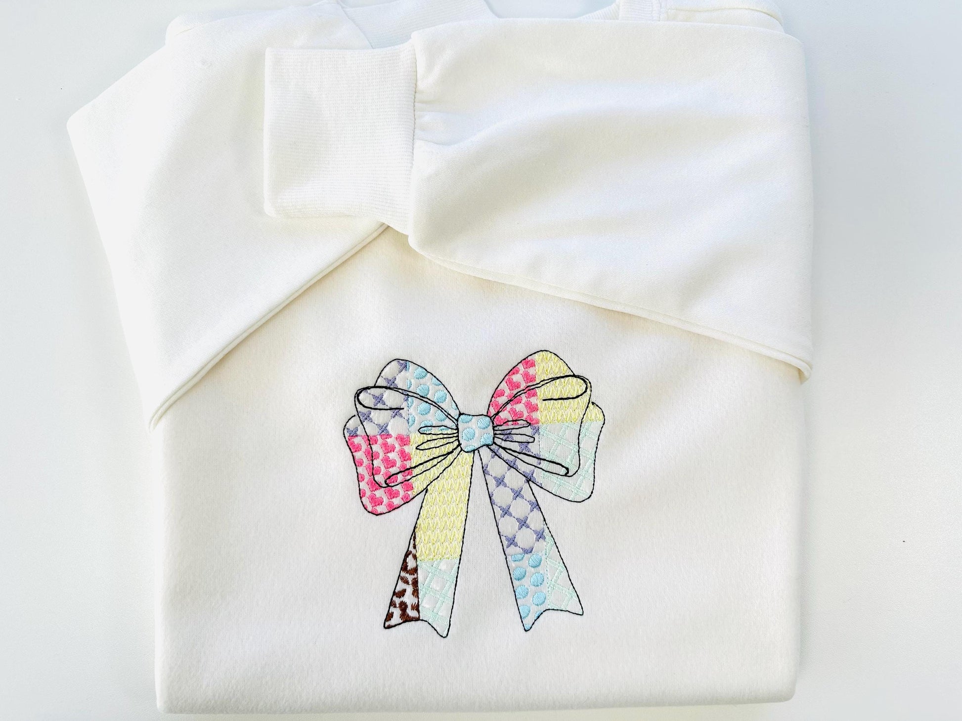 Patchwork Bow patterned heirloom bow ribbon machine embroidery designs many sizes 4 up to 7 inch kids girls t-shirt sweatshirt embroidery