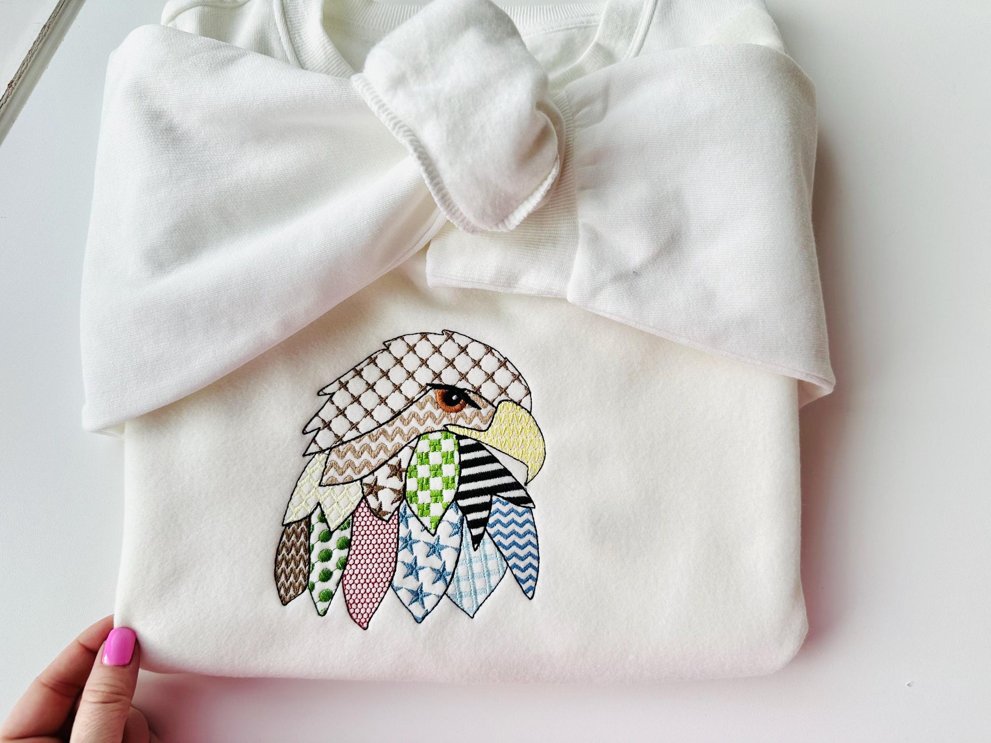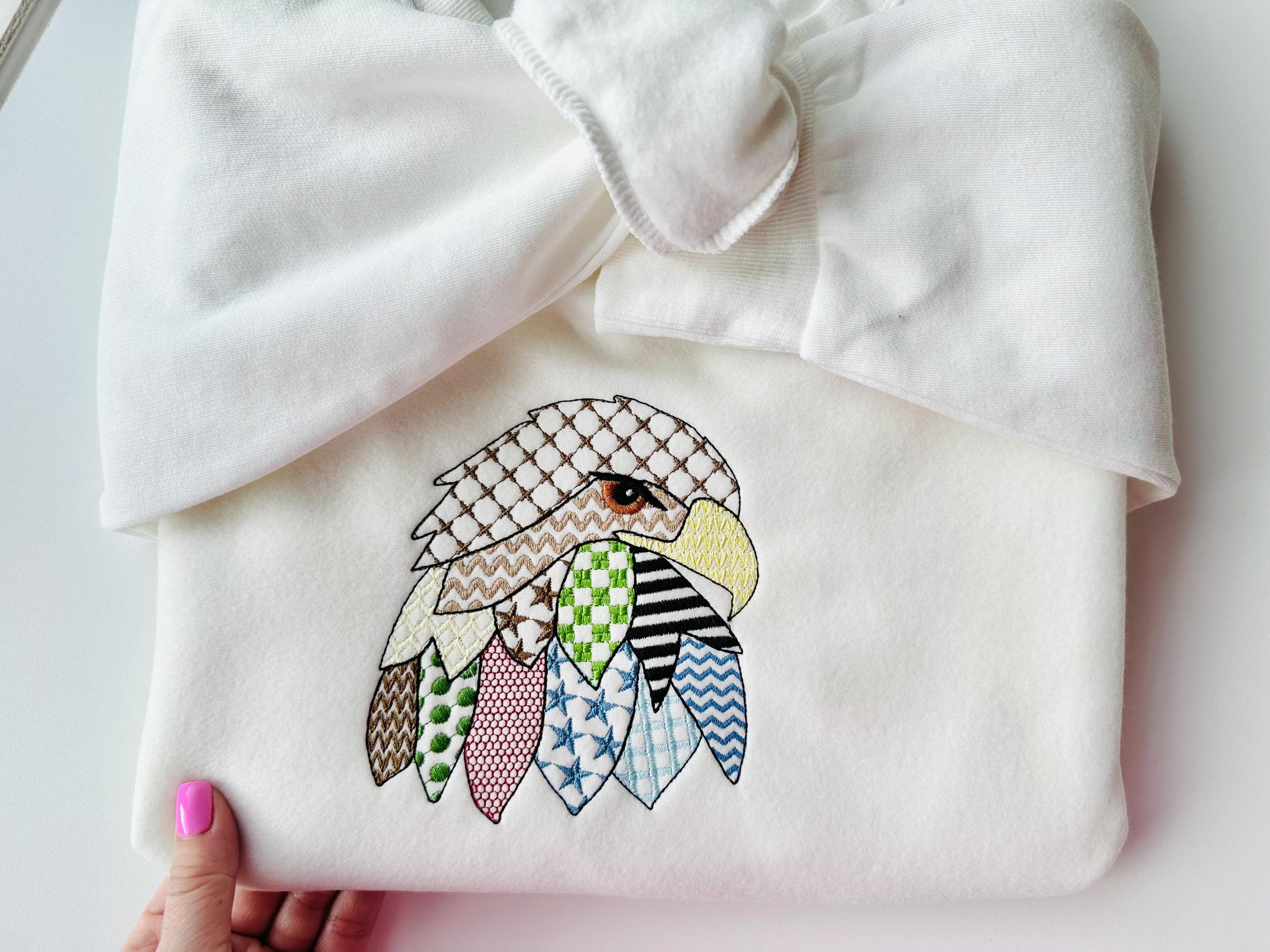 Patchwork Eagle awesome patterned wild bird Bald Eagle machine embroidery designs sizes 4 up to 6 inches light stitch Eagle head outline
