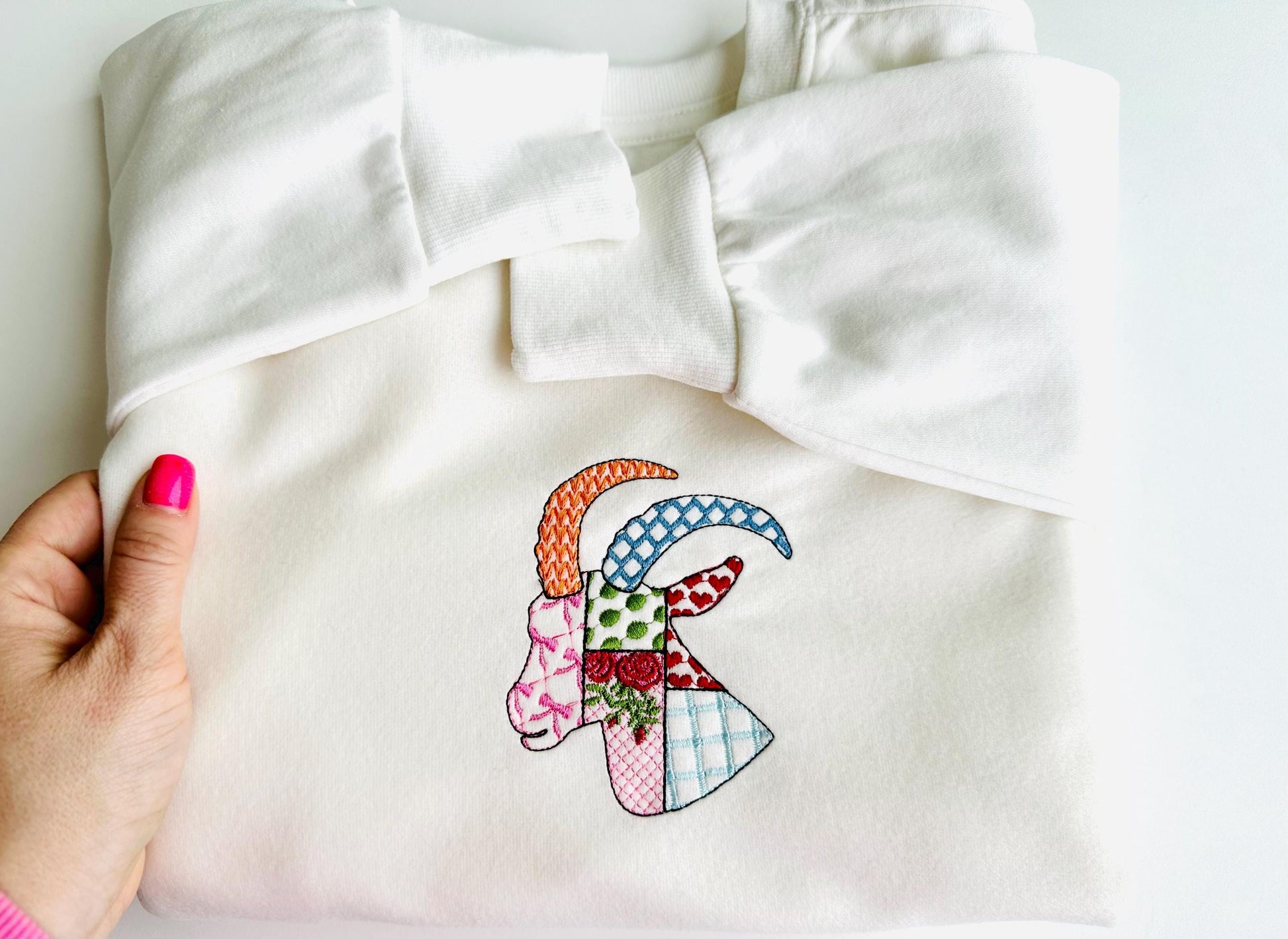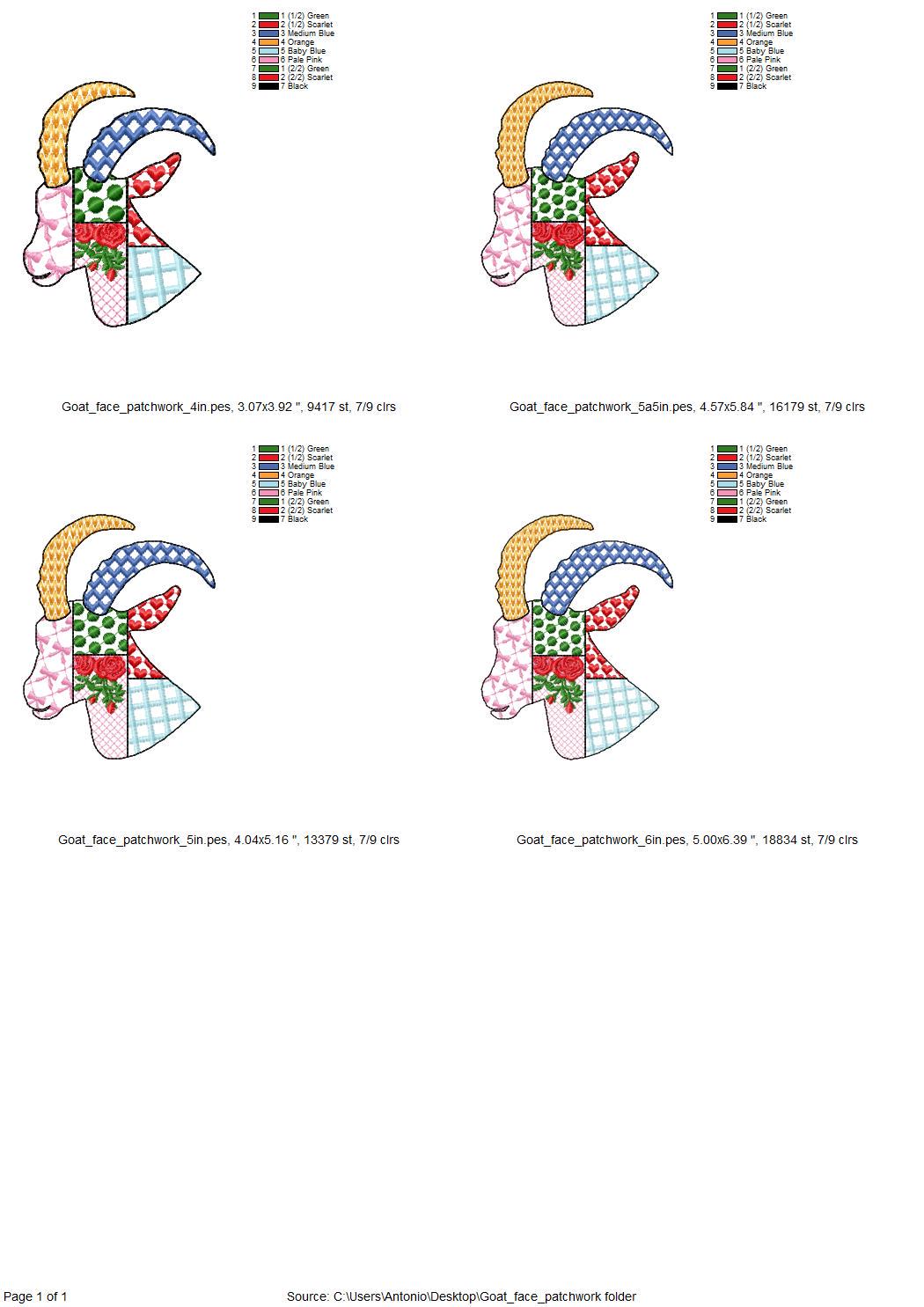 Patchwork Goat face Farm animal patterned Goat head silhouette outline machine embroidery designs sizes 4 up to 6 inch awesome folk design