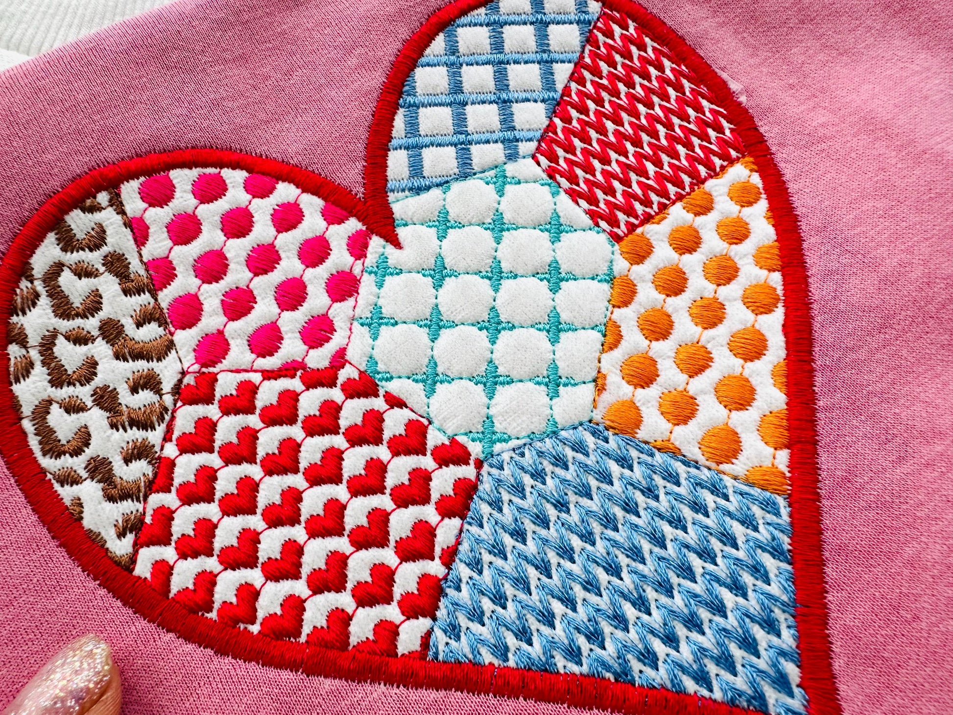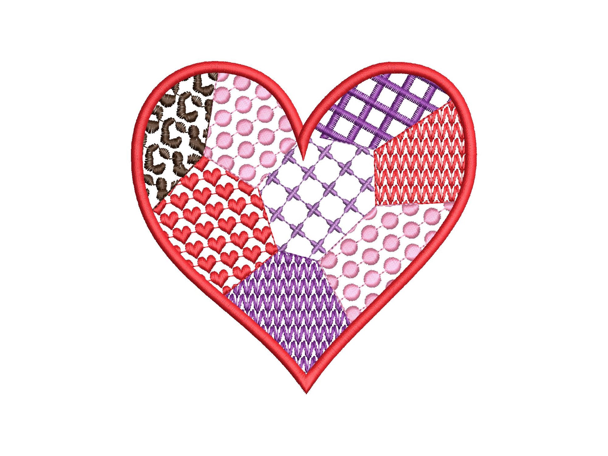 Patchwork Heart Valentine patterned Heart Applique machine embroidery
