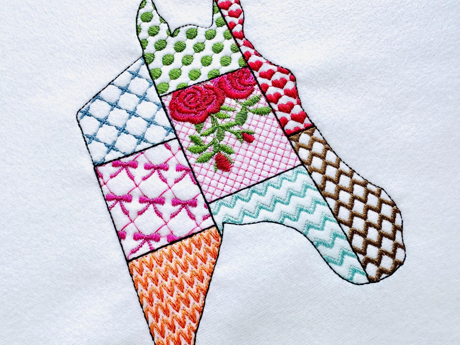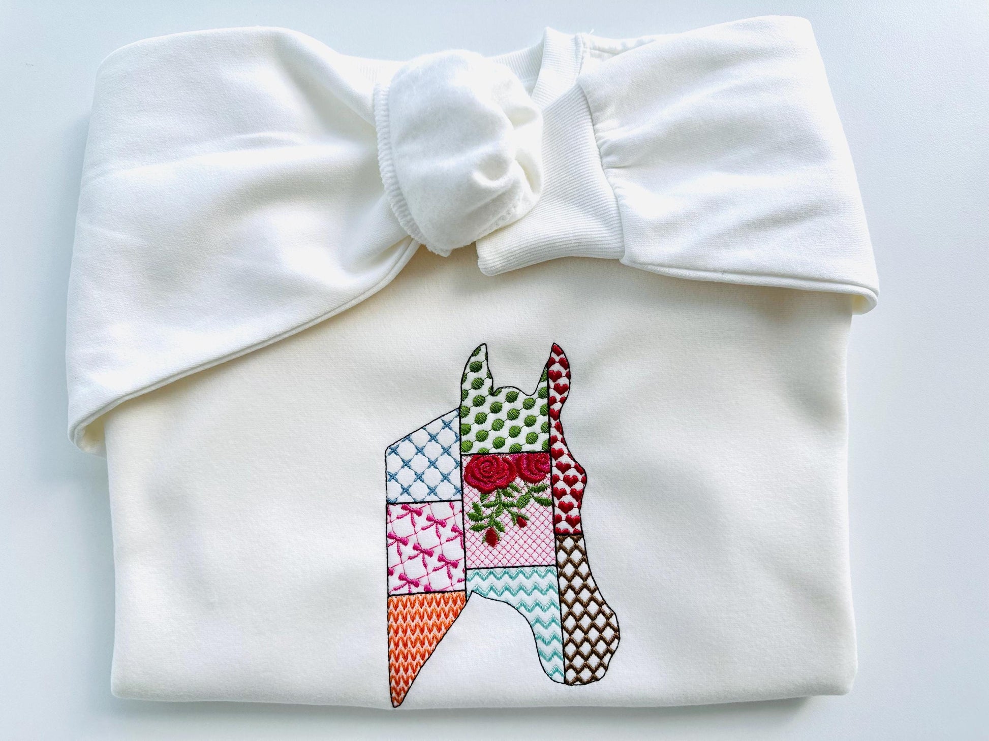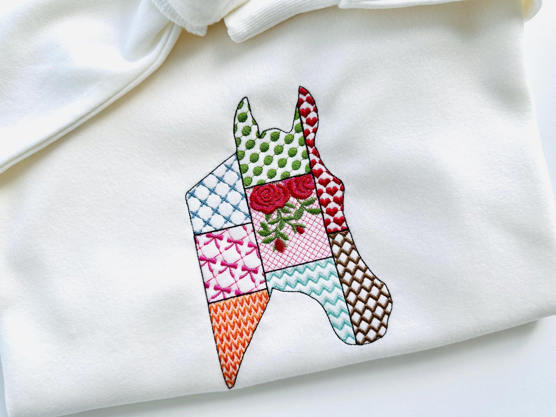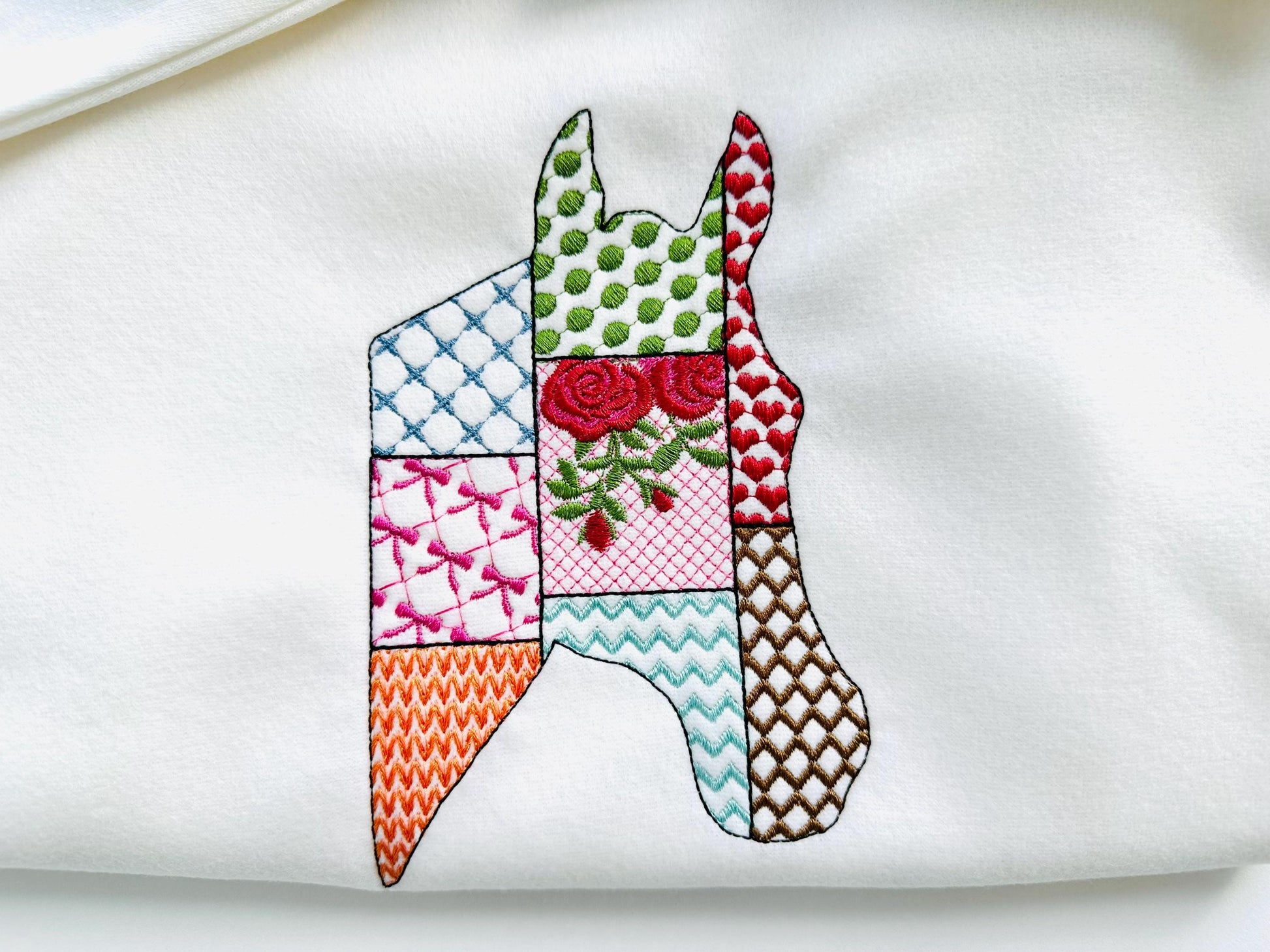Patchwork Horse face Farm animal patterned Horse head silhouette outline machine embroidery designs sizes 4 up to 9in folk pillowcase tshirt