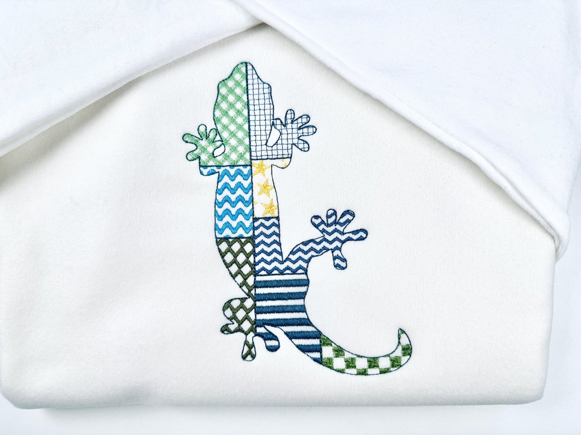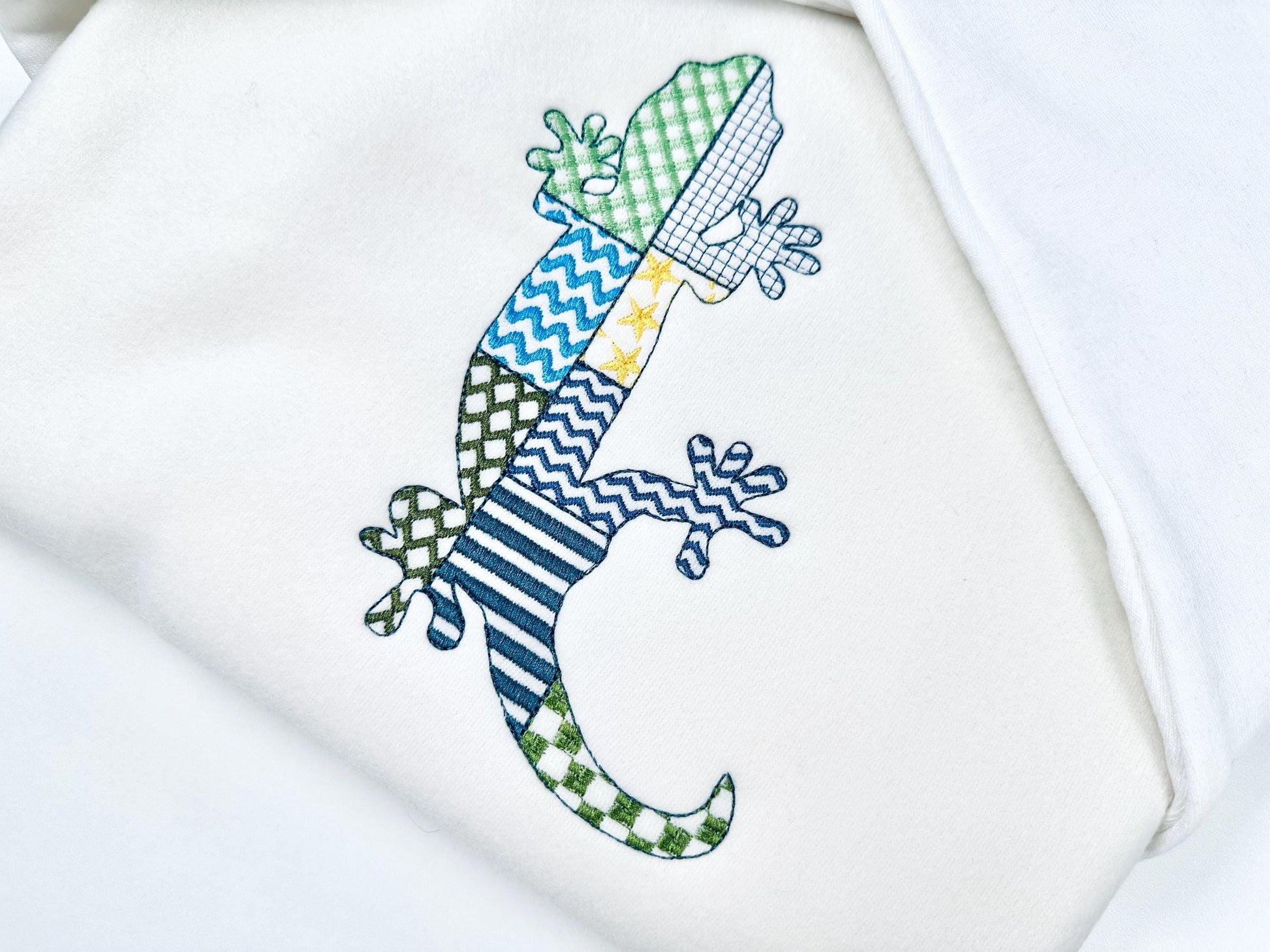 Patchwork Lizard Gecko animal silhouette patterned outline small dragon reptile varan machine embroidery designs many sizes 4 up to 9 inches