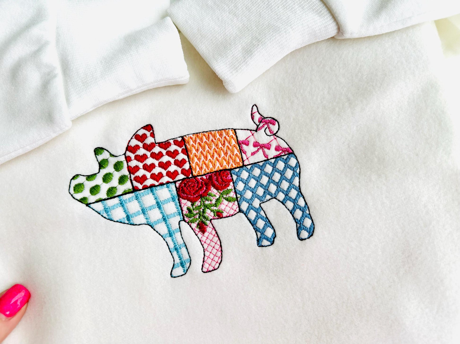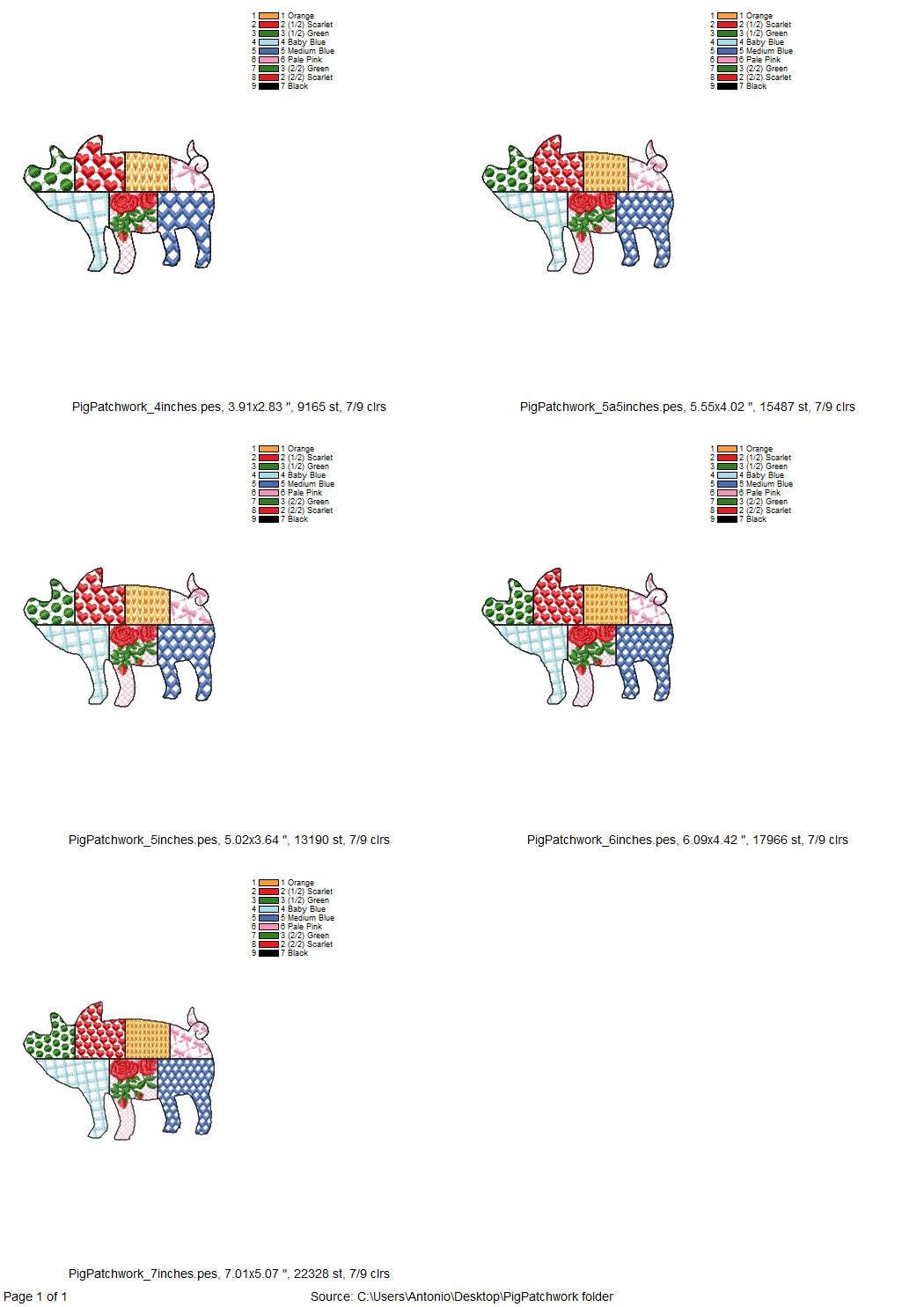 Patchwork Pig Piggy Piggie Farm animal patterned Pig silhouette outline machine embroidery designs sizes 4 up to 7 inch folk farm design