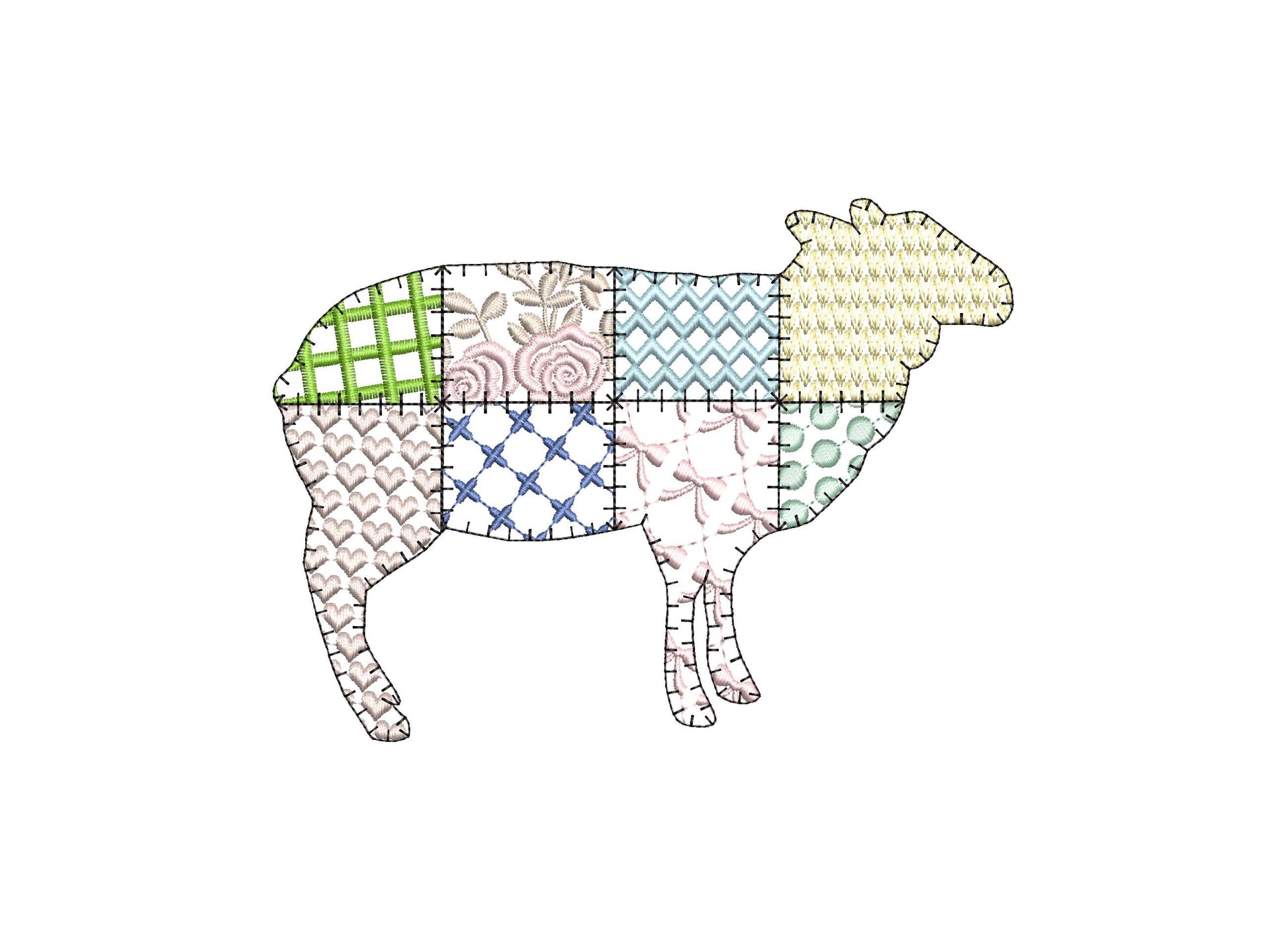 Patchwork Sheep Lamb patterned farm animal machine embroidery designs sizes 4.5 up to 8in kitchen pillowcase design for hoop 4x4 5x7 8x8