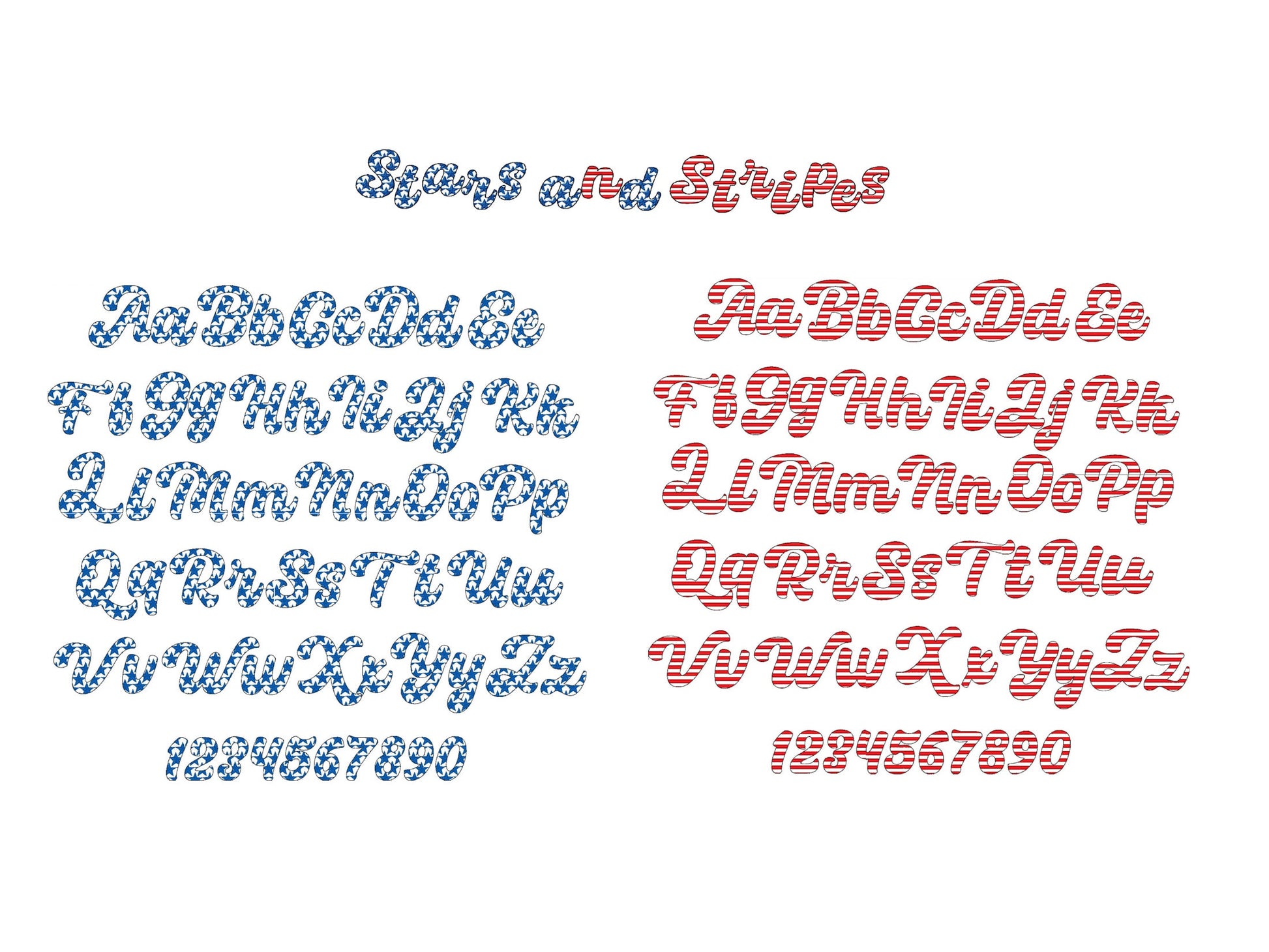 Patriotic Stars and Stripes Cursive Font SET of 2 types machine embroidery designs alphabet letters monogram 4th July Independence Day fonts