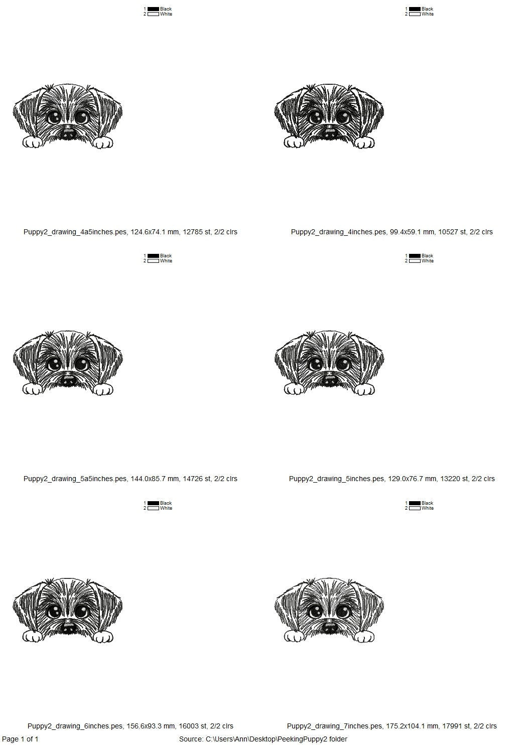 Peeking puppy head silhouette cute dog line art drawing sketch light stitch machine embroidery designs 4, 5, 6, 7in kids sweatshirt design