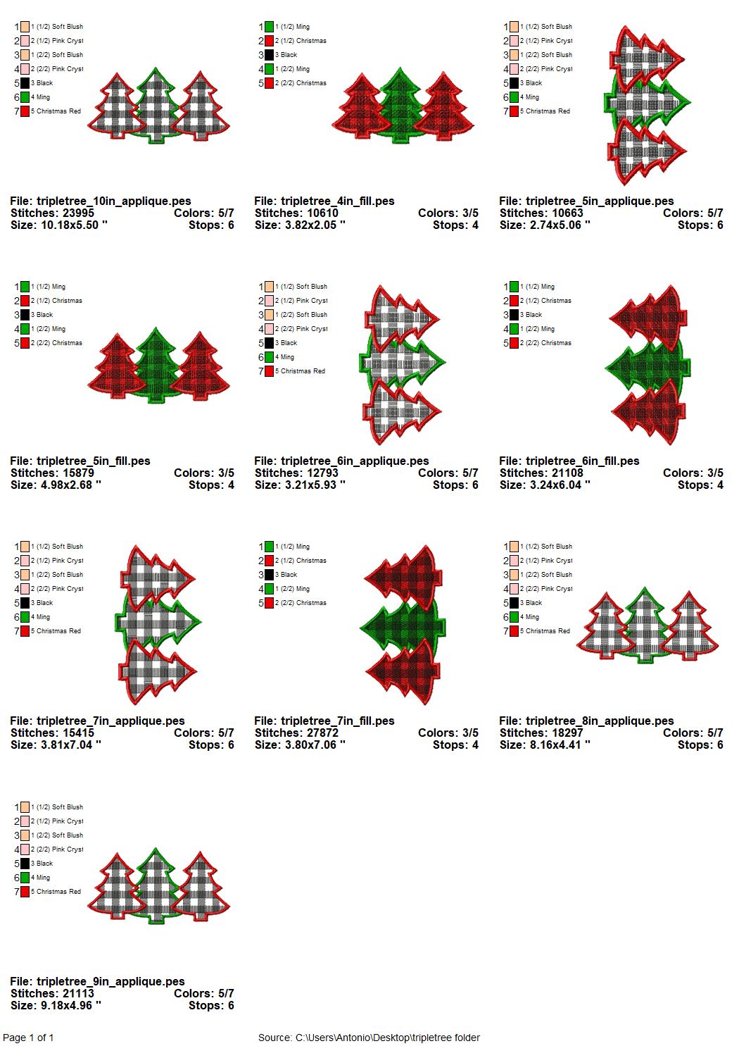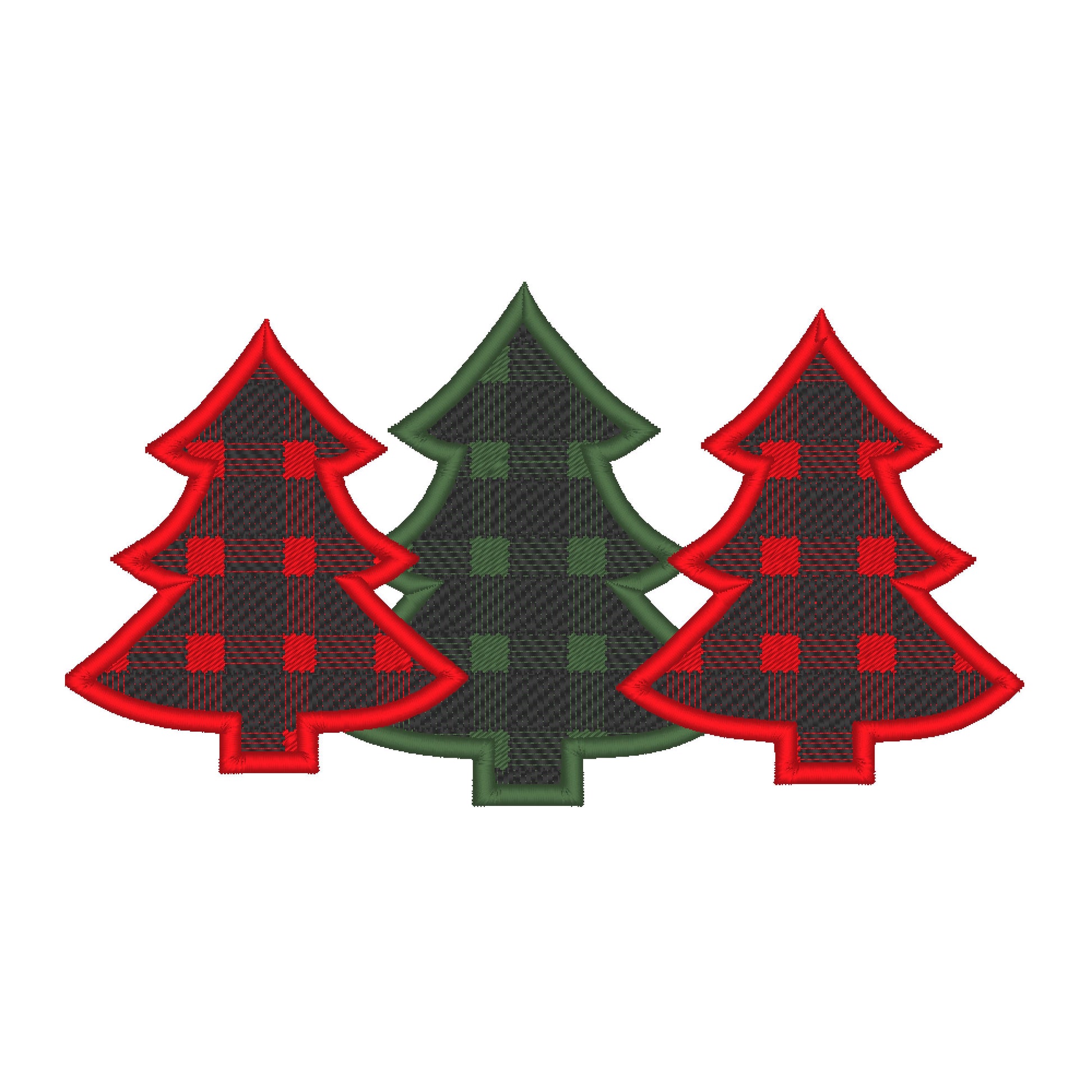 Plaid Checked Woodland Tree Trio Applique and fill stitch design three Christmas tree in a row machine embroidery designs