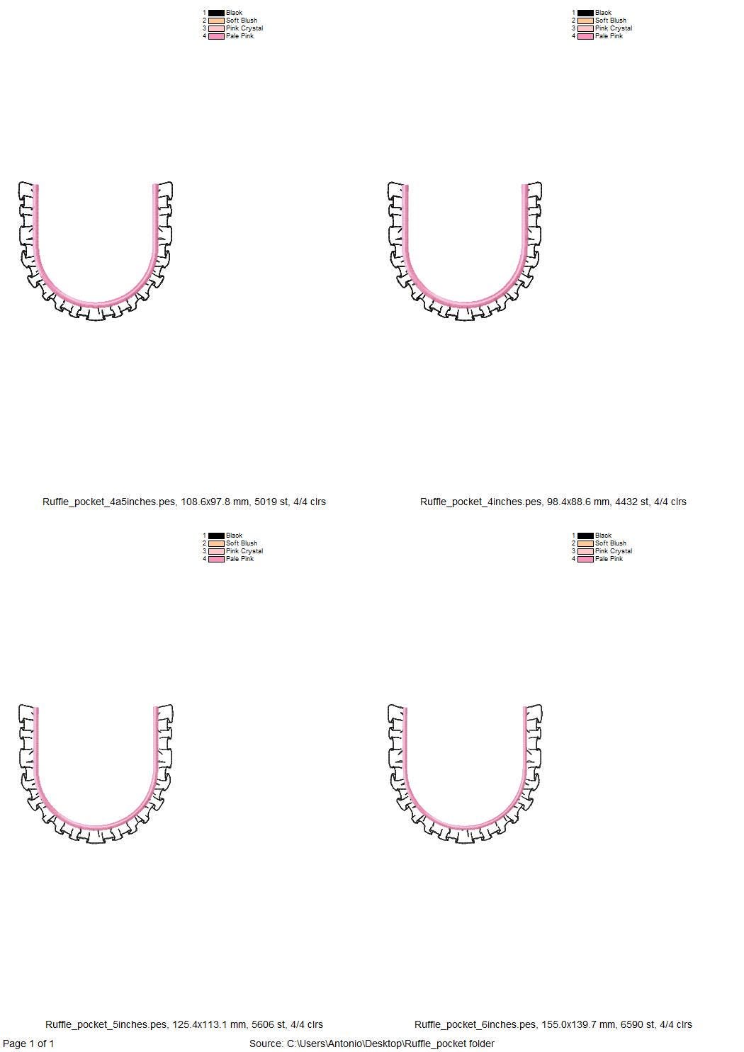 Pocket ITH pretty girly Ruffle Pocket in the hoop machine embroidery designs awesome genuine Pocket kids outfit applique multiple sizes