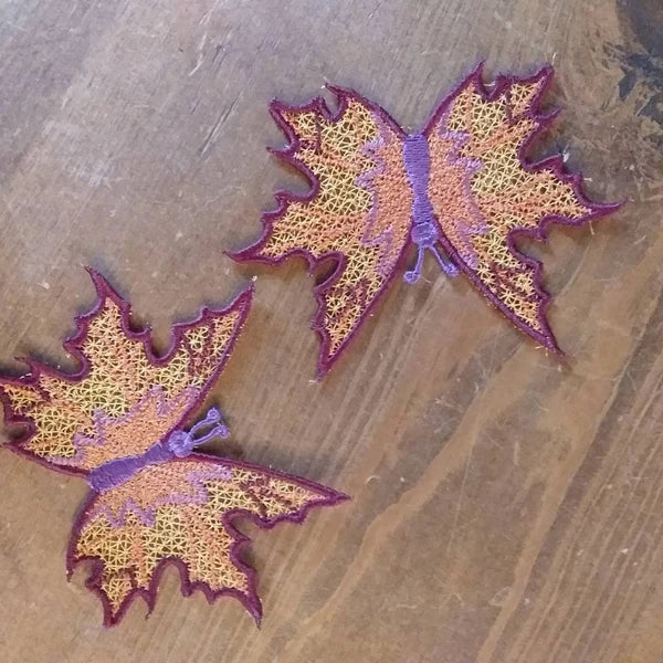 Precious Autumn Fall Leaf Butterfly FSL freestanding lace machine embroidery designs assorted sizes home decor or outfit accent