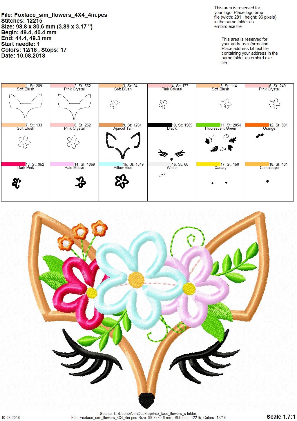 Formats: PES, DST, EXP, VIP, HUS, XXX, JEF, VP3, also BX for fonts and ART available on request.