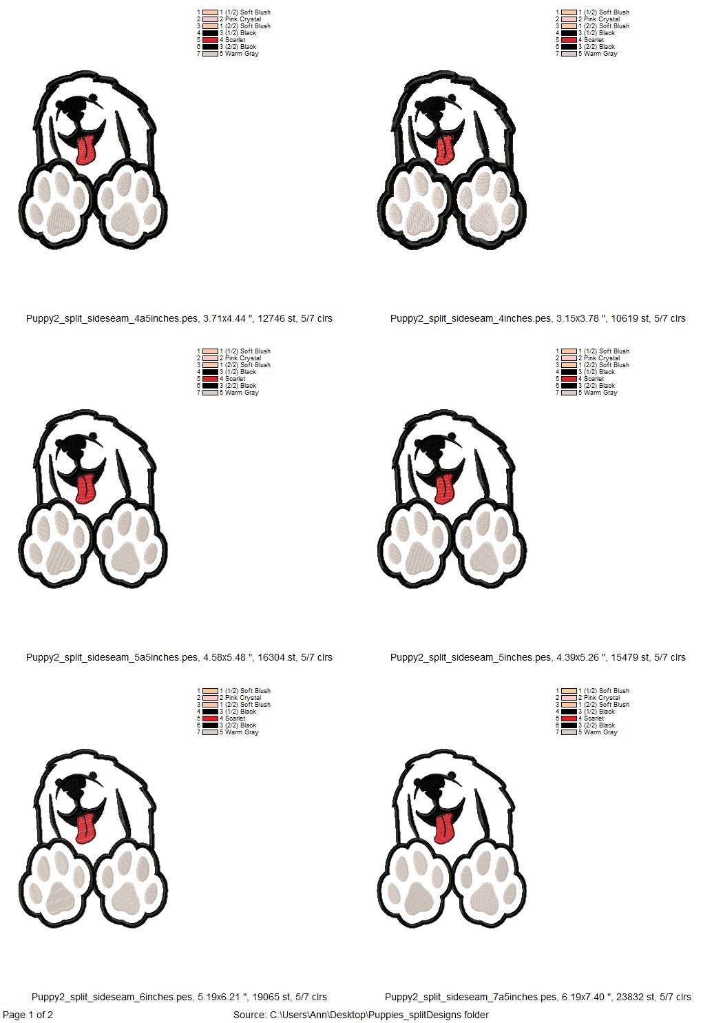 Color charts: PDF or image file with thread colors, stitch order, and counts