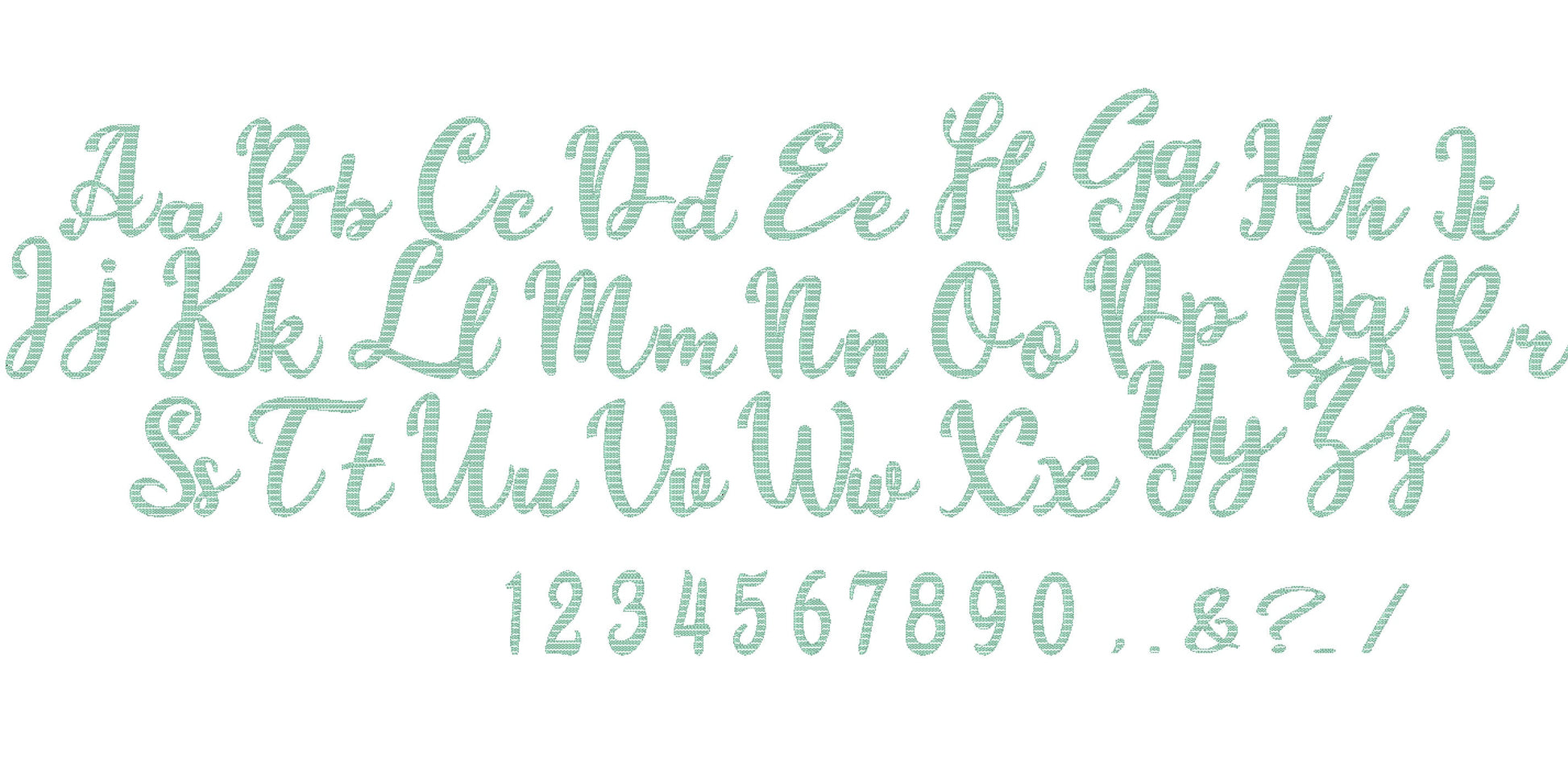 Quick Sketch Fill Bean Stitch Font light stitch machine embroidery designs script alphabet letters size 1.75, 2.8, 3.4, 4.5, 5.6, 6.7in, BX
