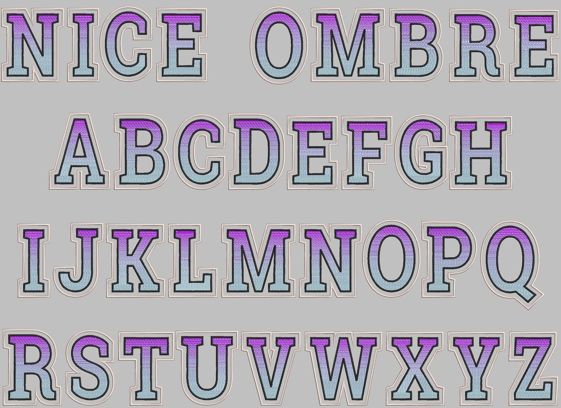 Rainbow Iridescent 2 Color Monogram varsity sport block FONT alphabet letters machine embroidery designs gradient ombre BX also