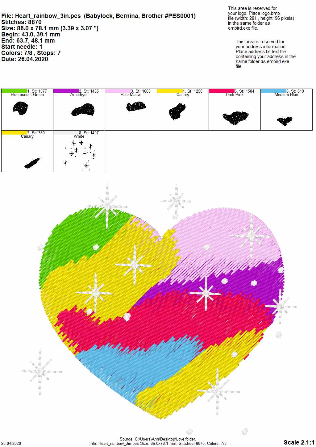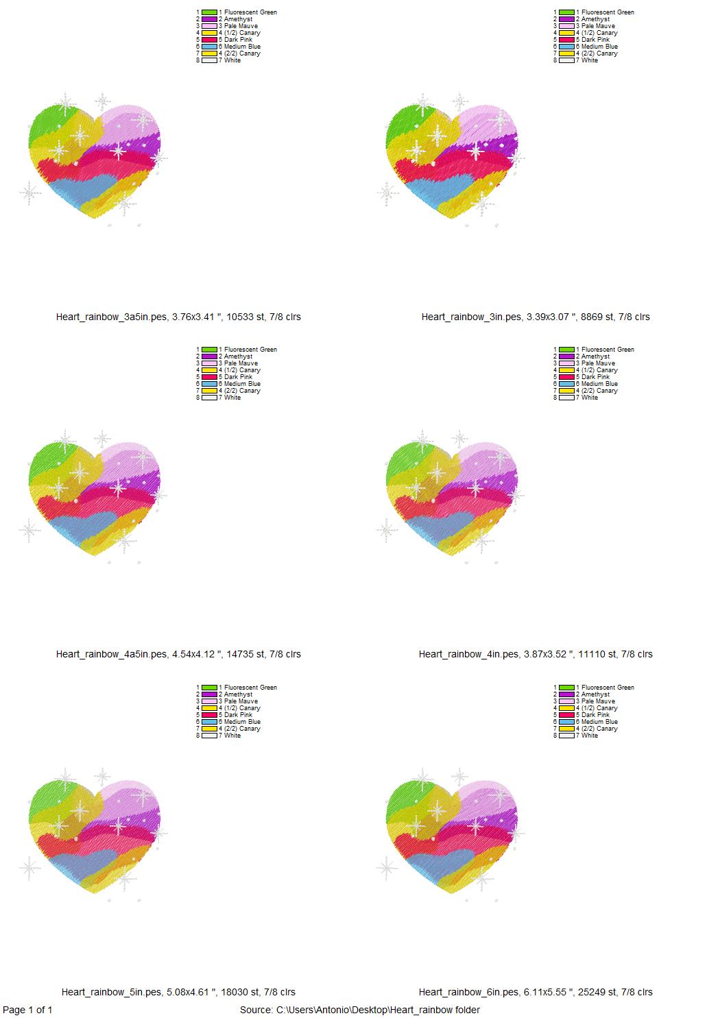 Sparkling Rainbow Heart light stitch machine embroidery designs kids girls Valentine Day multicolor Heart sizes for hoop 4x4 and 5x7