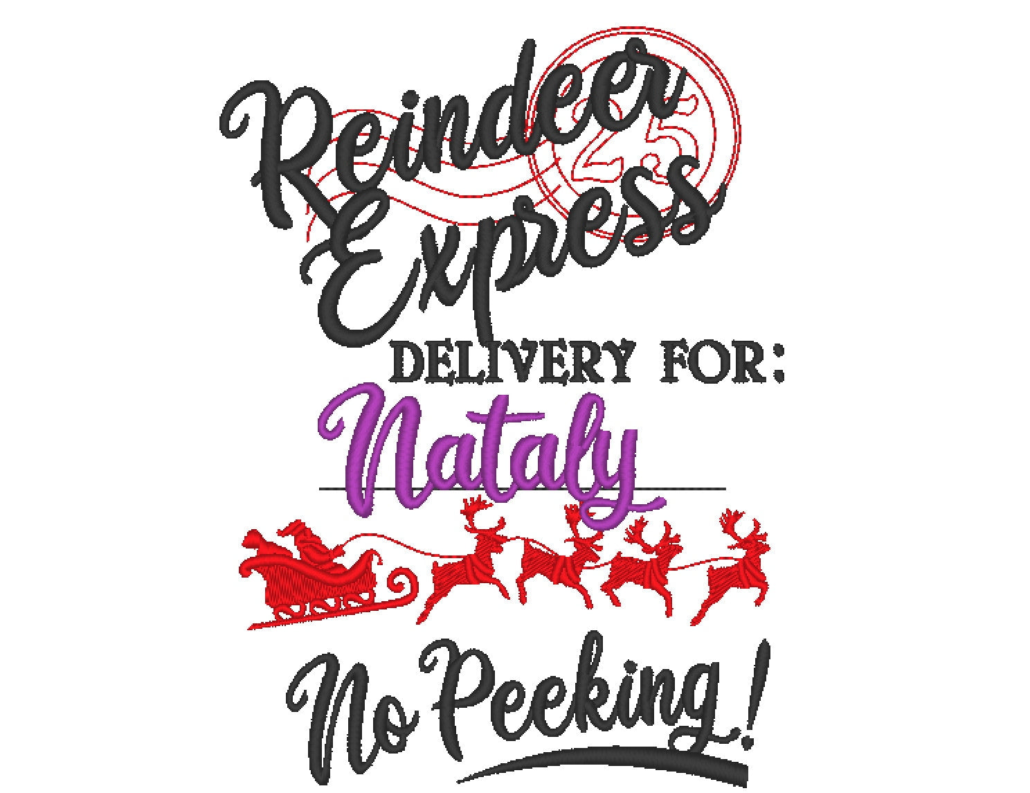 Reindeer express Christmas sack stamp machine embroidery designs assorted sizes 4x4 5x7 and 6x10 Christmas stocking