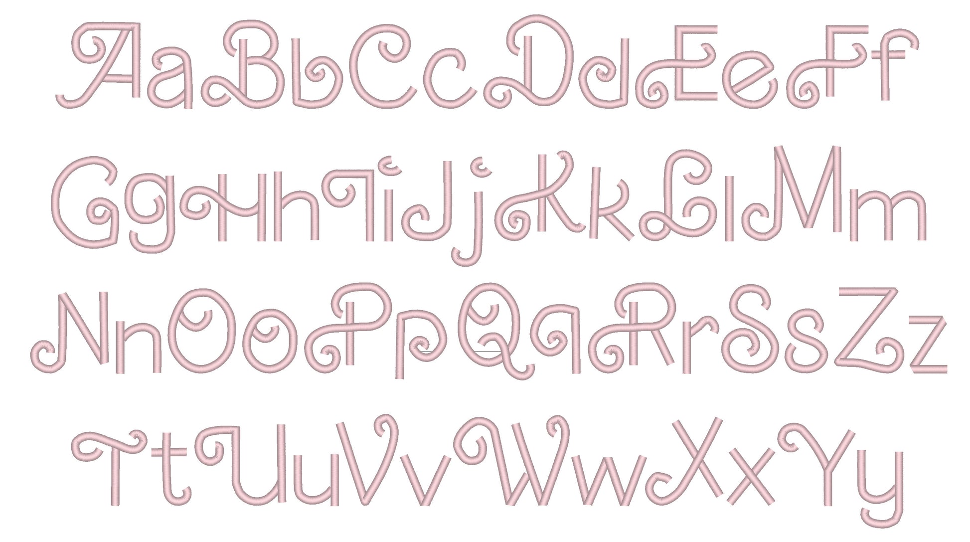 Retro Valentine Satin Stitch Line FONT, Machine Embroidery Designs In Handwritten Swirl Curl Alphabet Letters, Monogram Font