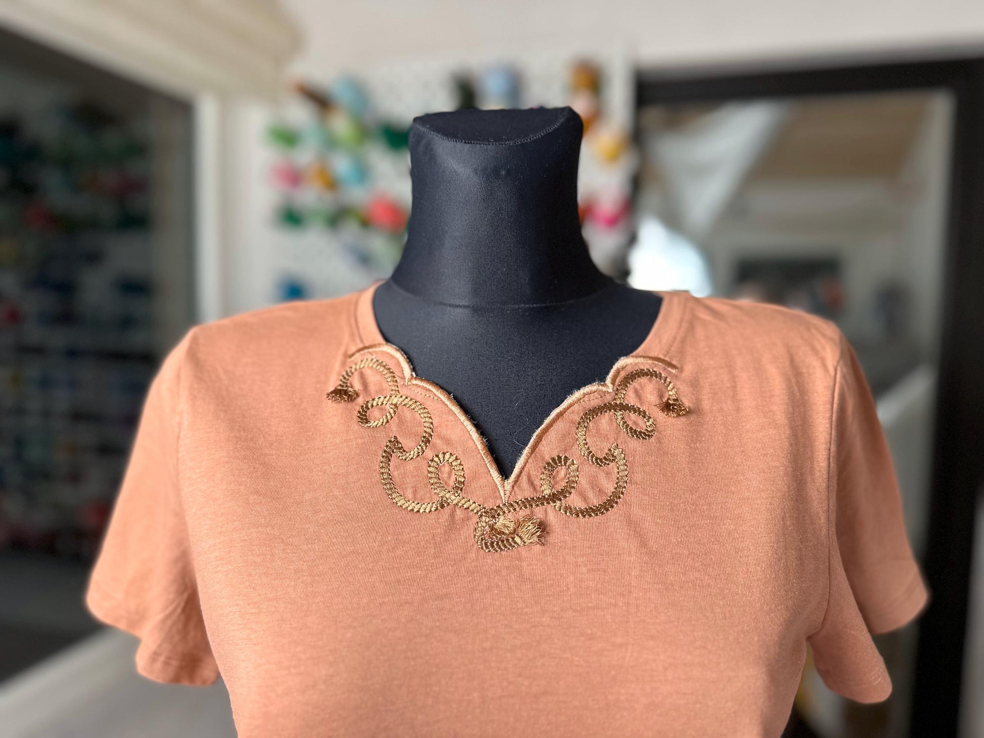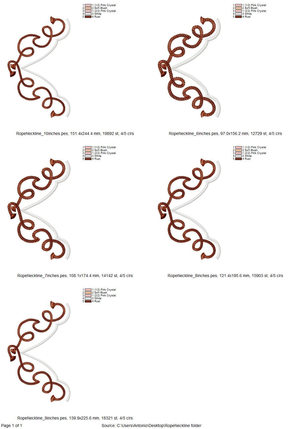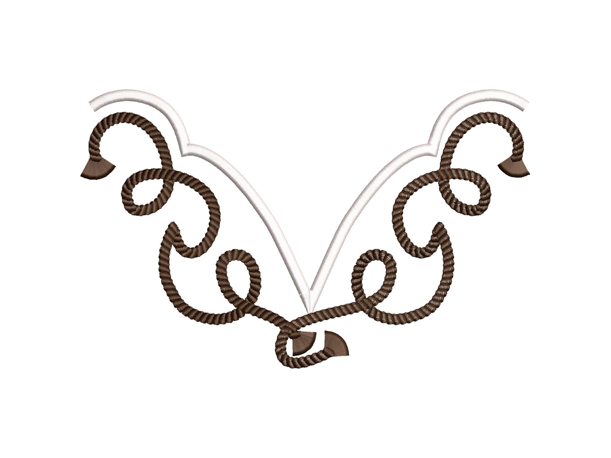 Rope stitch Neckline cutout machine embroidery designs curly rope celtic knot fringed tassel outfit t-shirt sweatshirt collar many sizes
