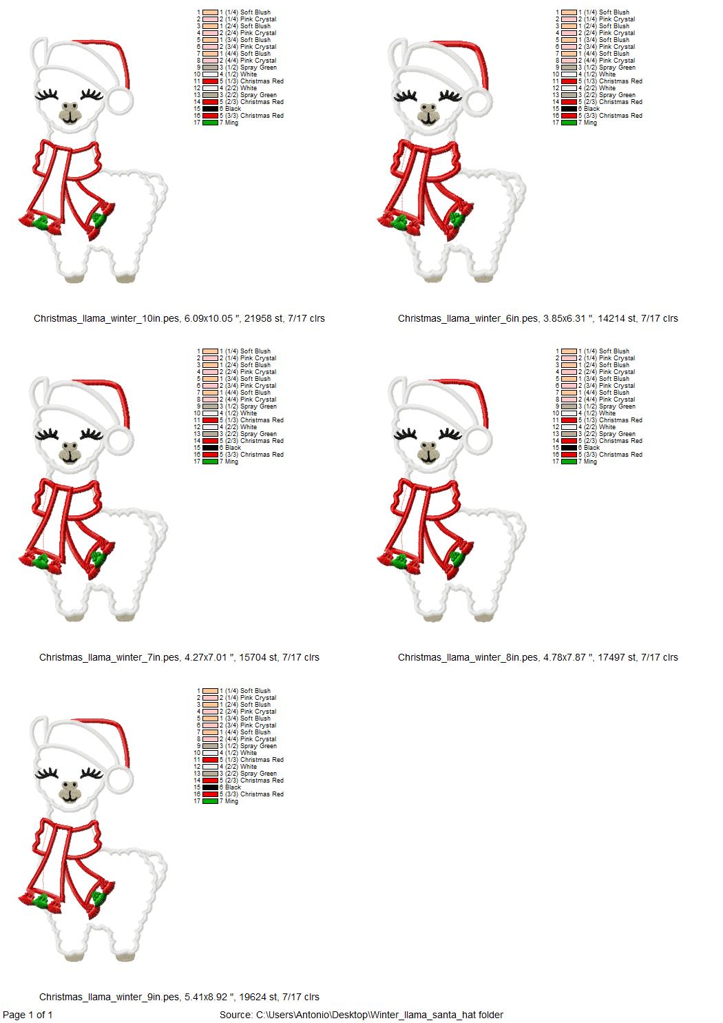 Christmas Llama Alpaca Applique winter outfit fringed scarf tassels Santa hat kids boys girls machine embroidery designs many sizes