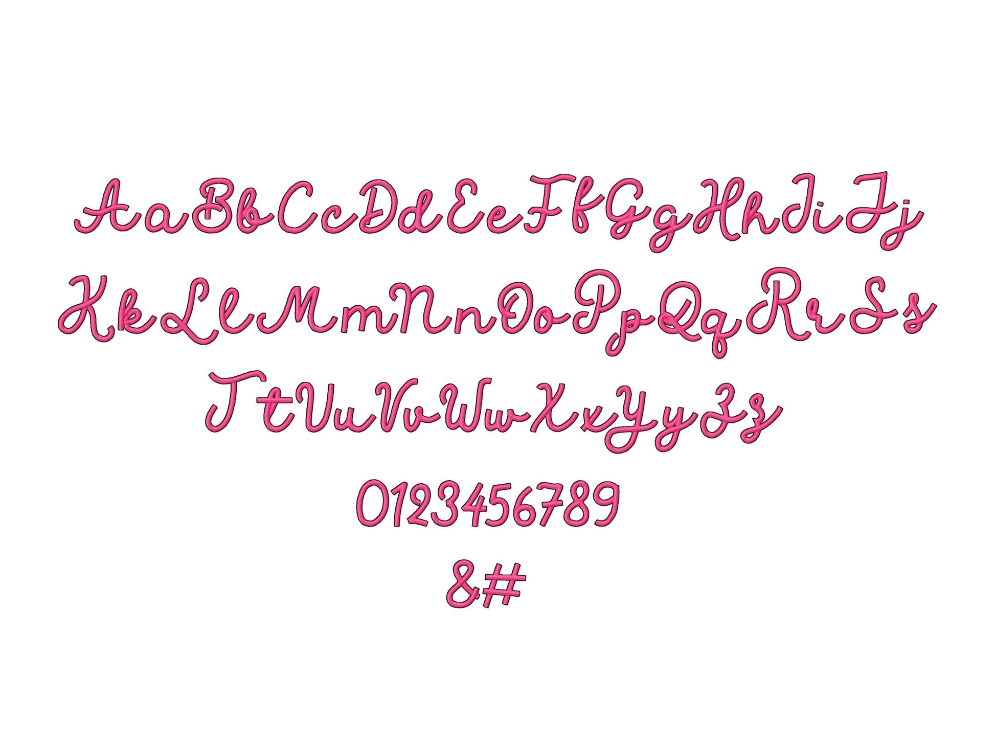 Satin stitch and outline FONT Barb handwritten script Font alphabet monogram machine embroidery designs small sizes 1 up to 2 inch, BX