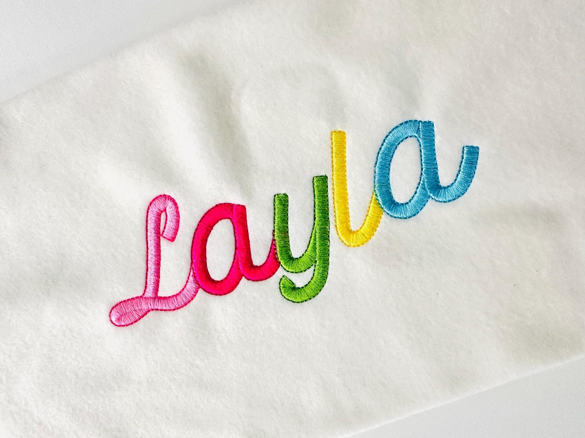 Satin stitch FONT with bean outline cursive script handwritten Font