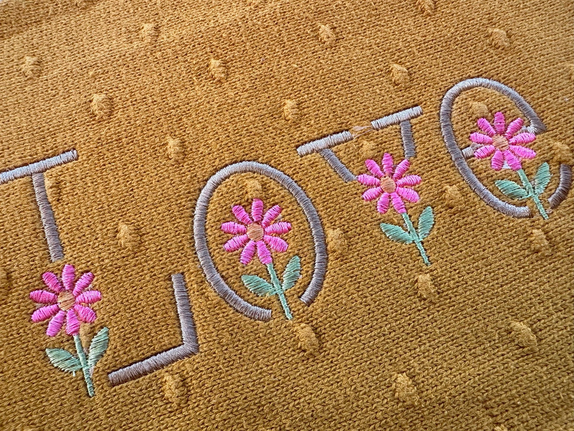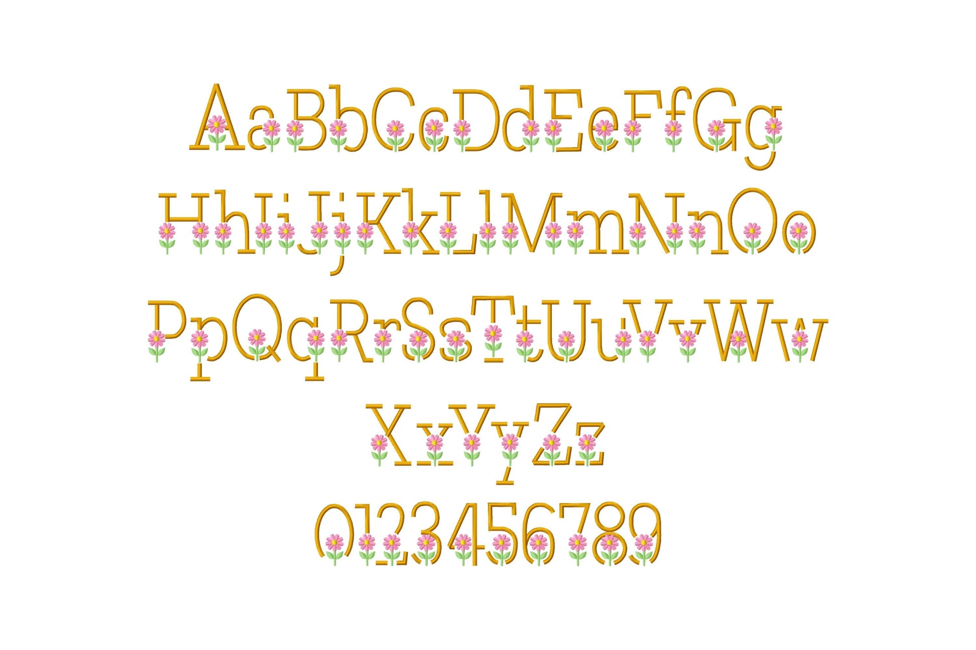 Satin stitch Spring Flower Font SET of 2 fonts blank and flowered machine embroidery designs kids baby monogram sizes 1 up to 2.9 inch BX