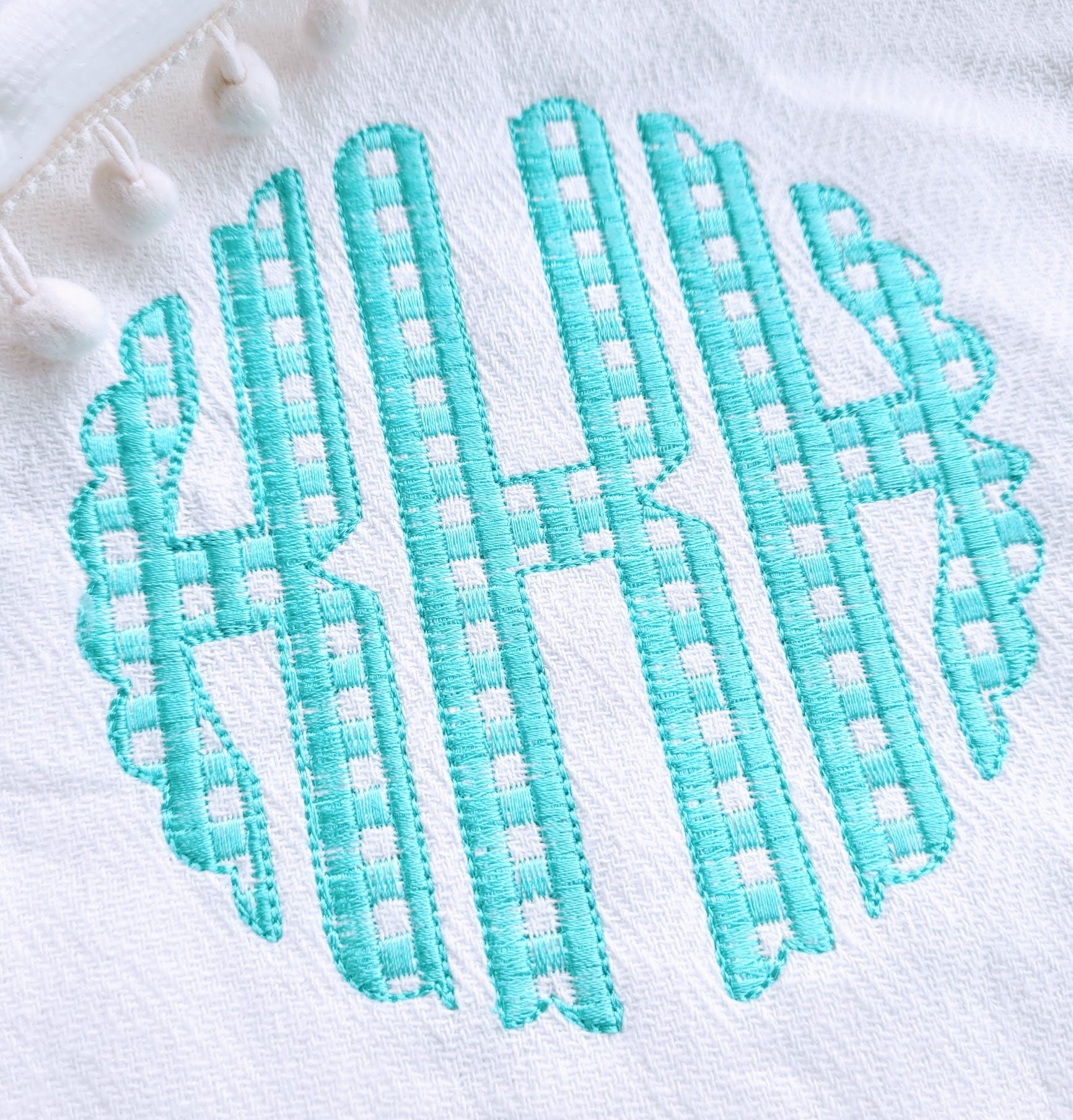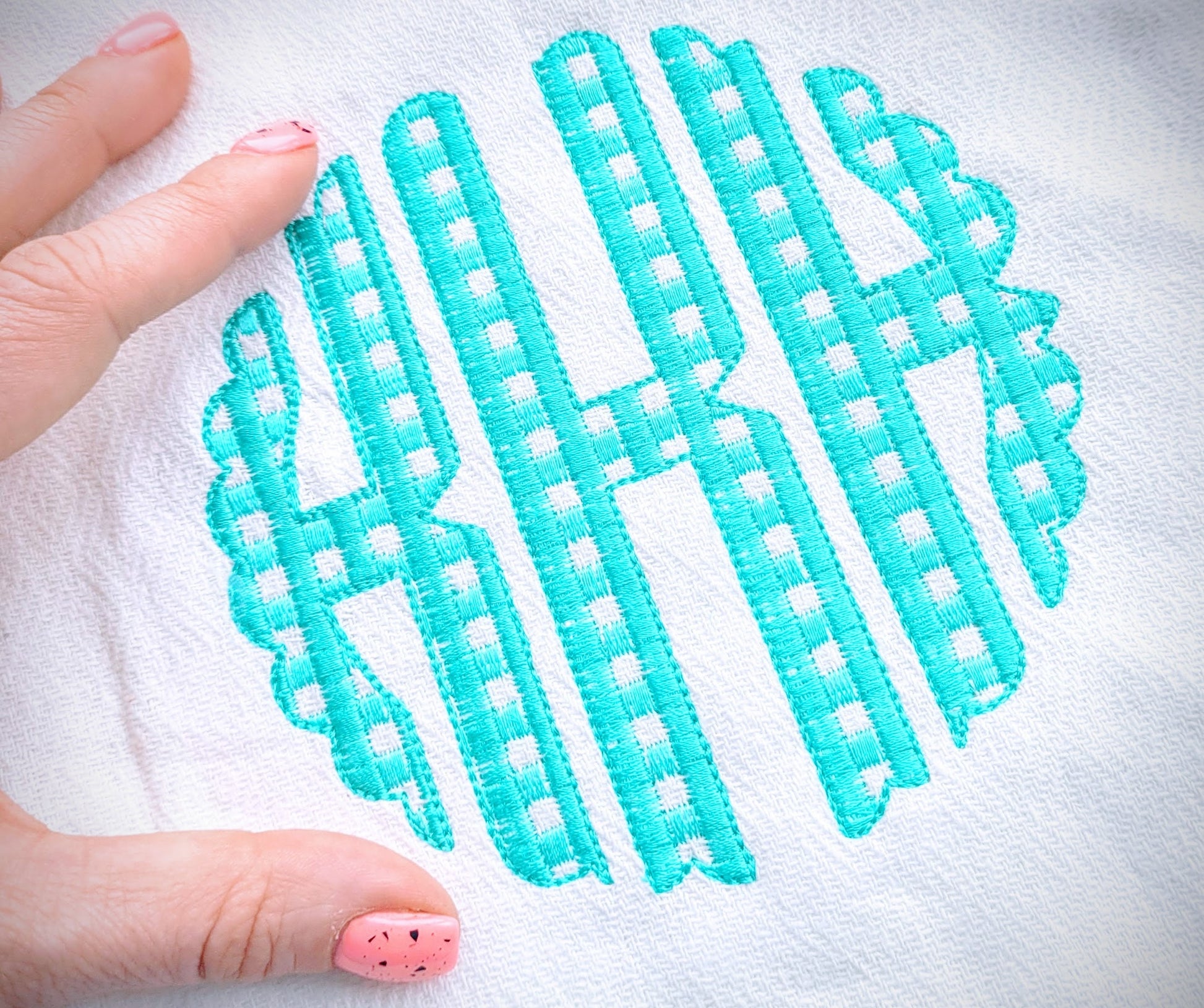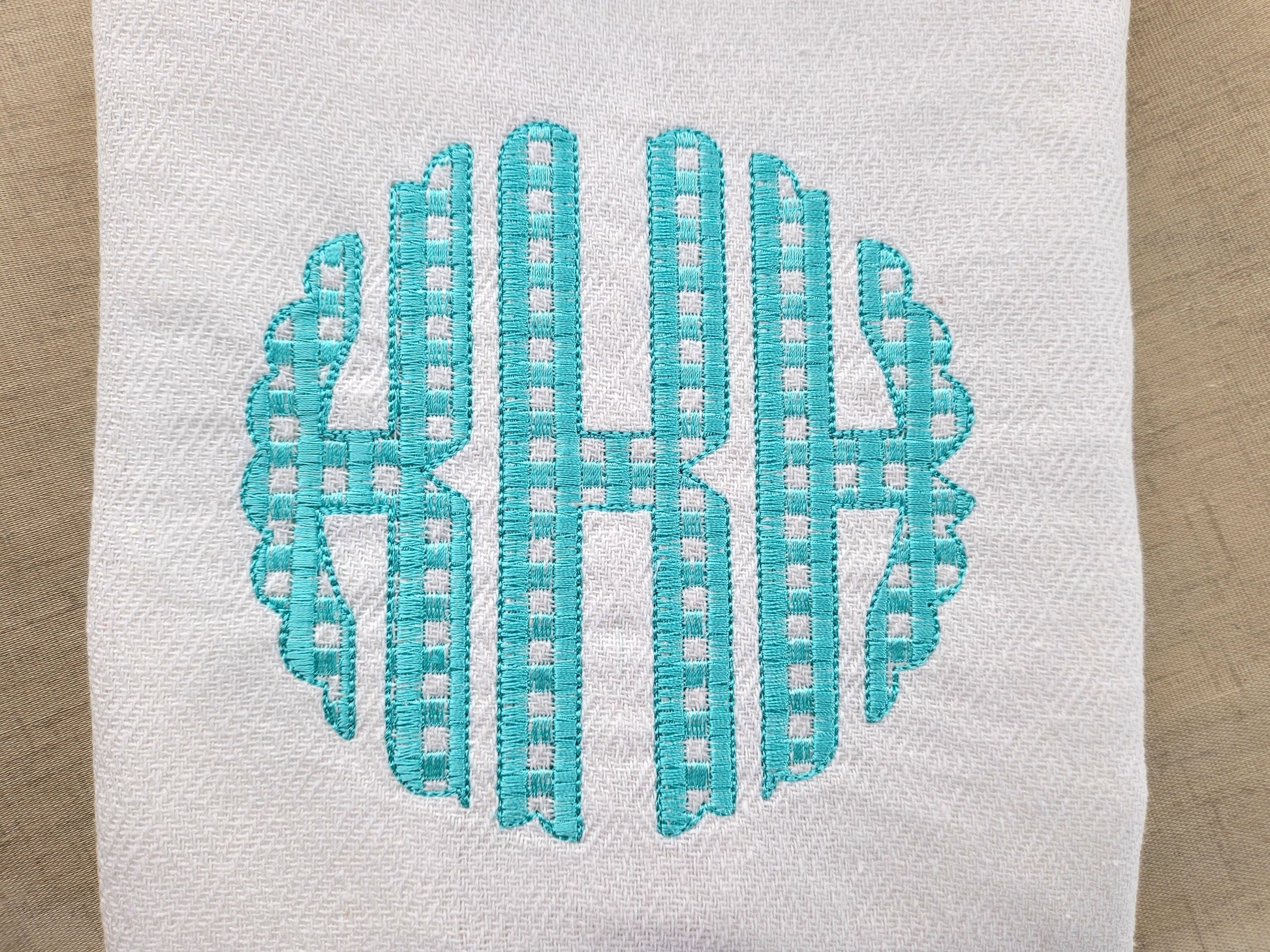 Scalloped Plaid Gingham checkered Buffalo Circle Monogram FONT machine embroidery designs, classic three letter round monogram many sizes BX