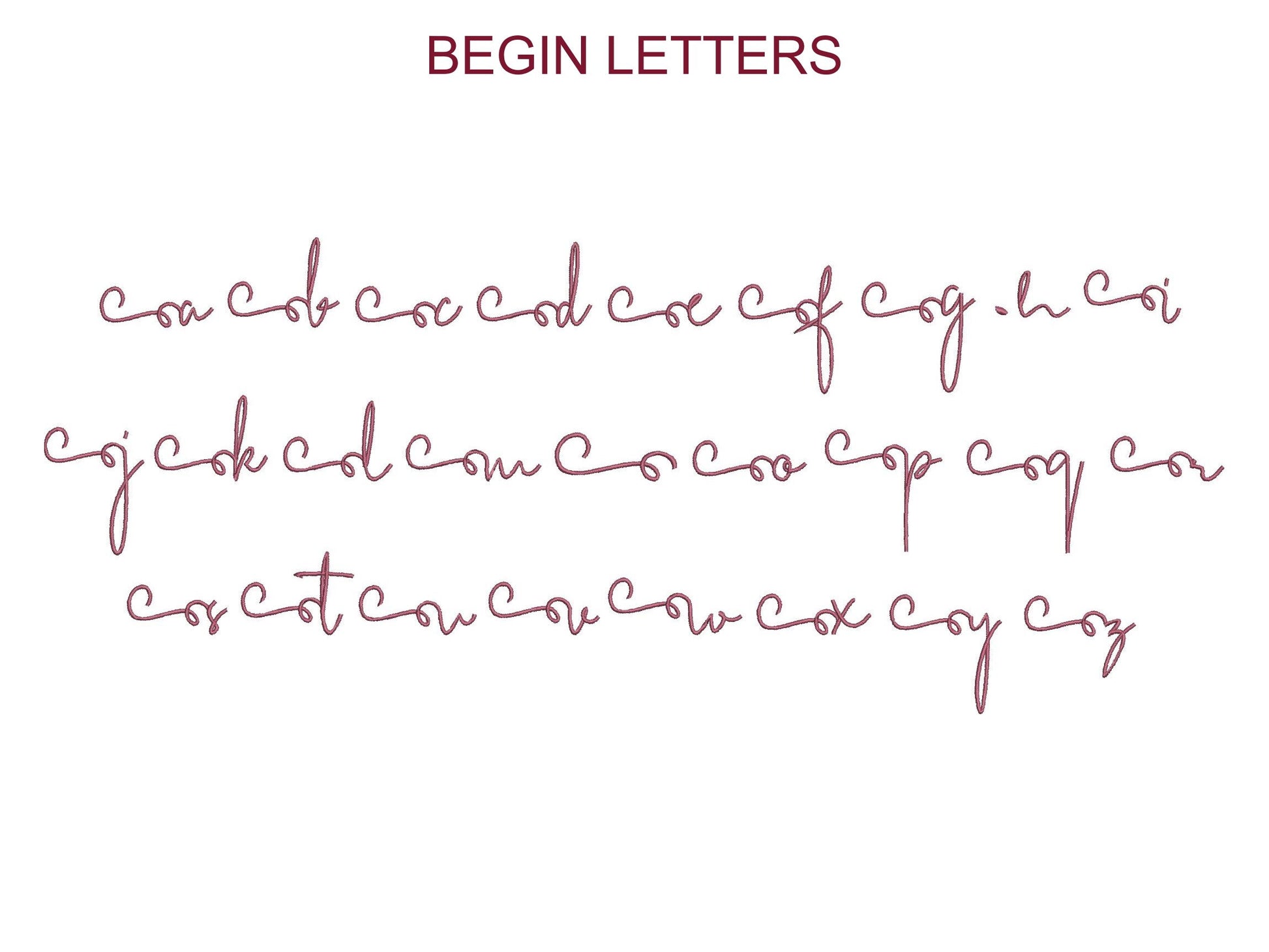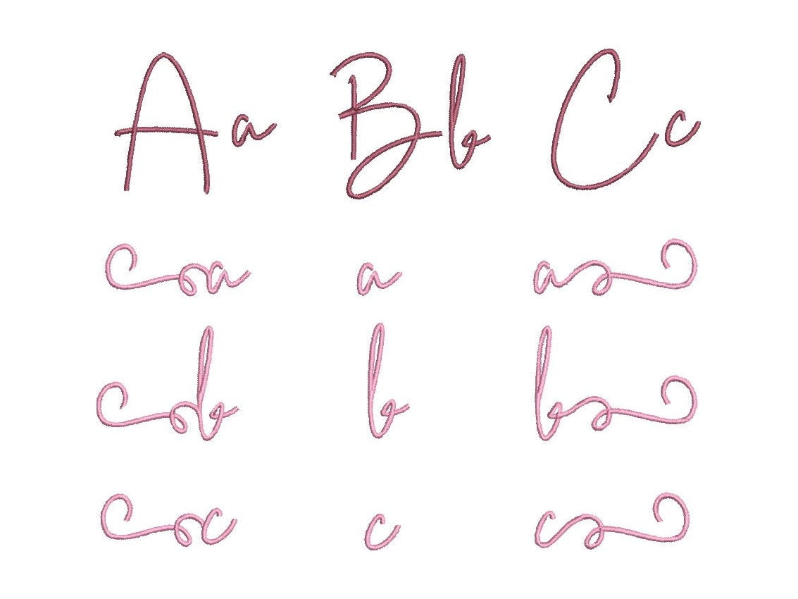 Script calligraphy signature Handwritten FONT machine embroidery designs mini sizes alphabet letters alternates swash and tails BX