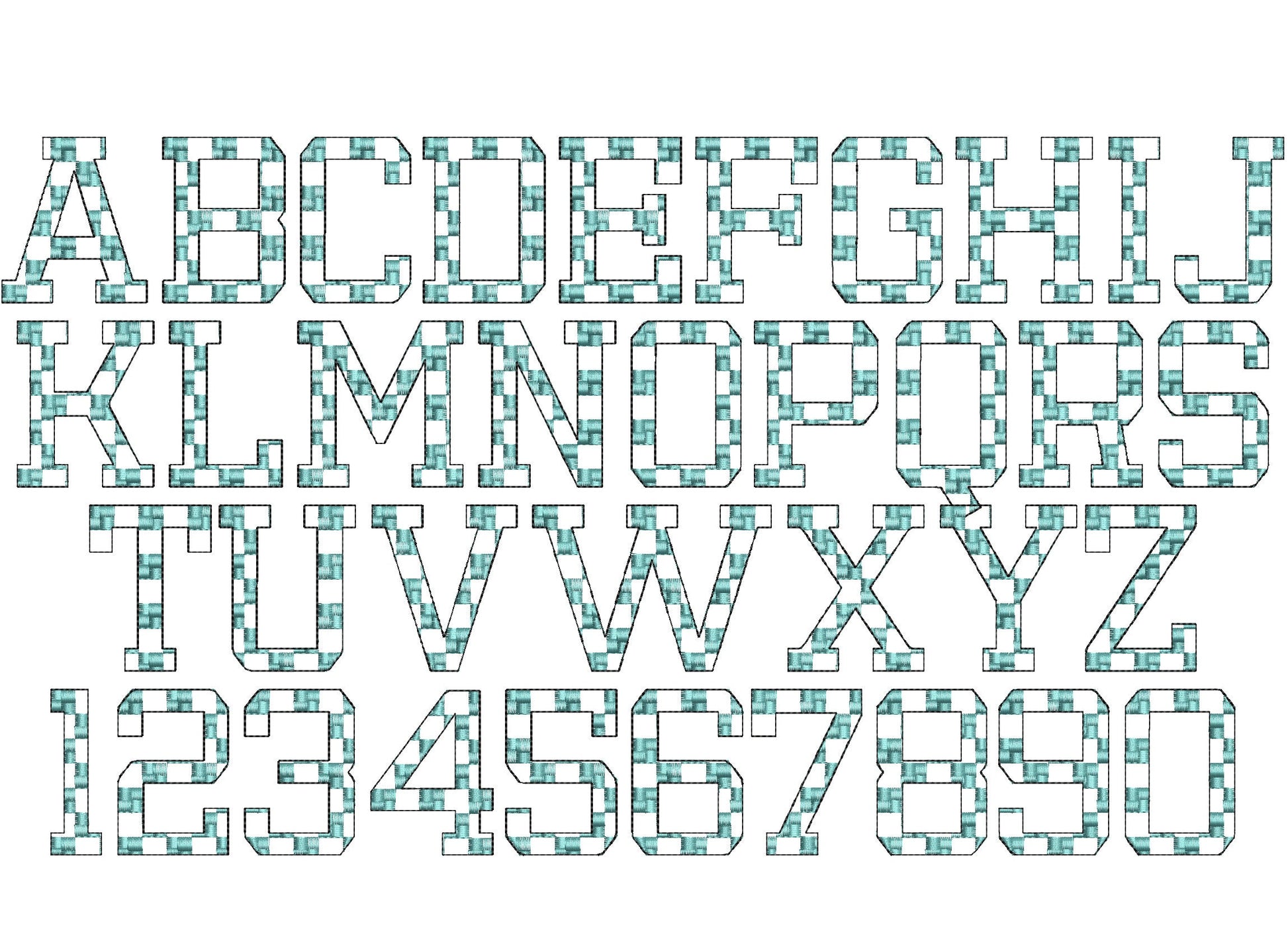 SET of 4 Patterned Font Dots Checks Waves and Cubes alphabet letters & numbers machine embroidery design assorted sizes combine and merge