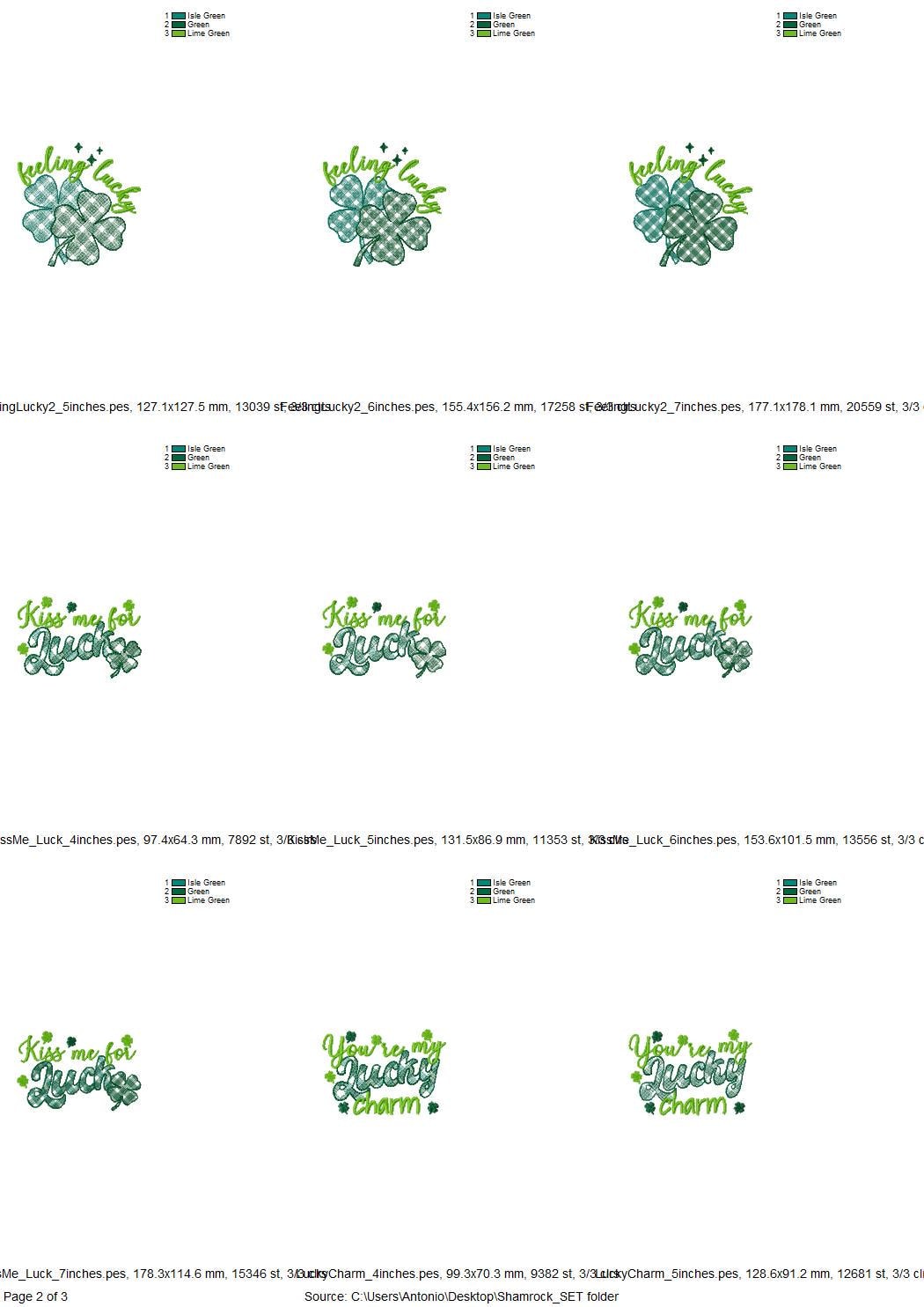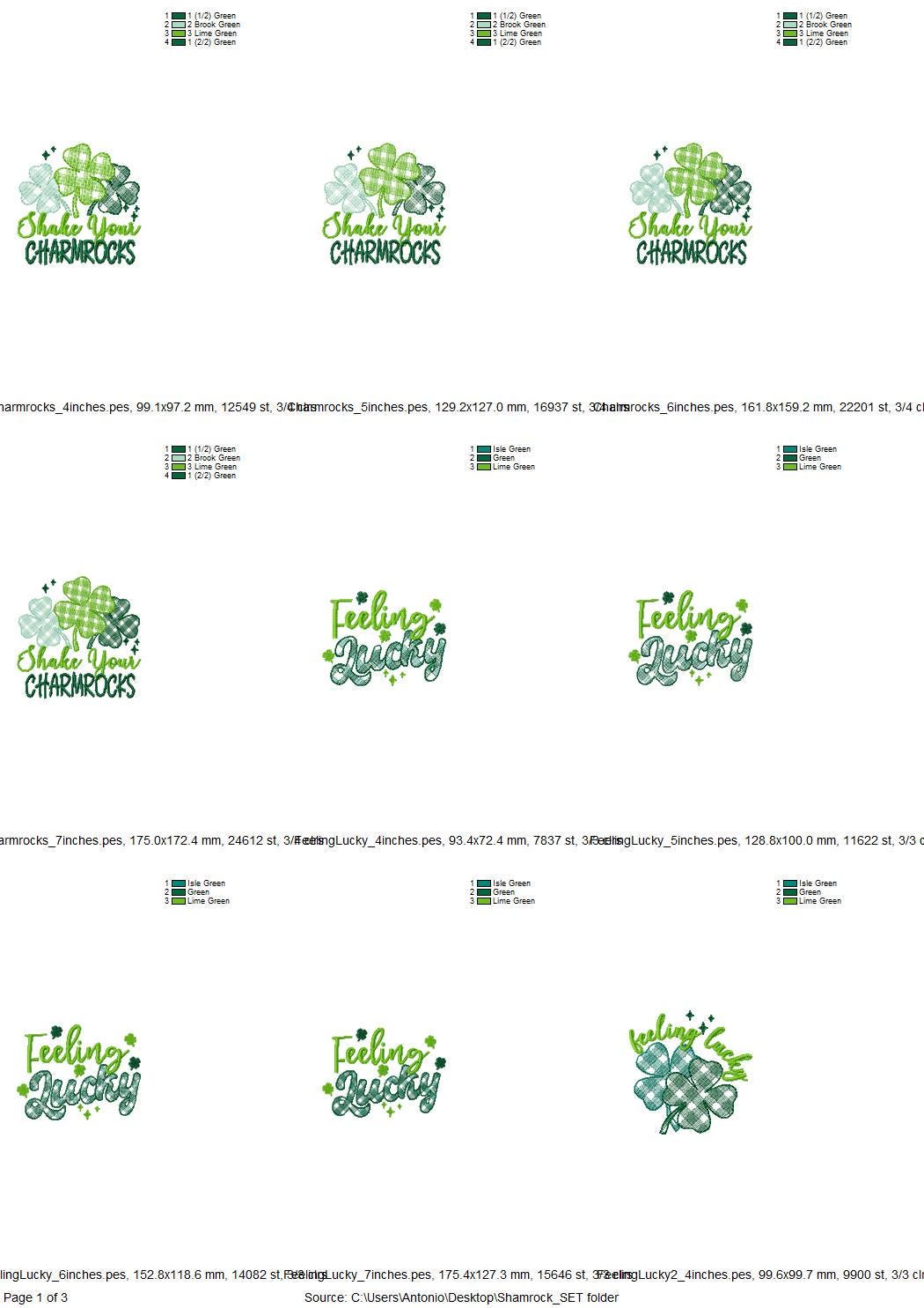 Shamrock Lucky Clover gingham buffalo plaid machine embroidery designs SET of 6 designs t-shirt sweatshirt feeling lucky St Patricks Day