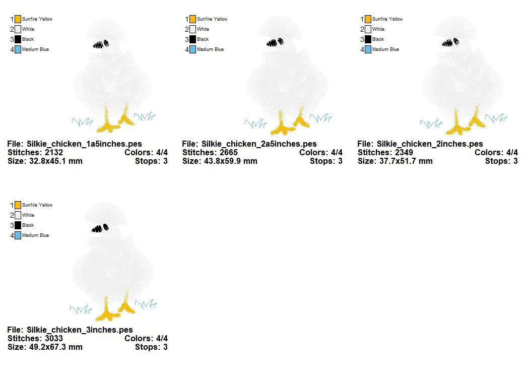 Silkie Chicken Silky mini fringed fluffy chenille farm bird machine embroidery designs awesome fringe fur chicken 1.5, 2, 2.5, 3 inches