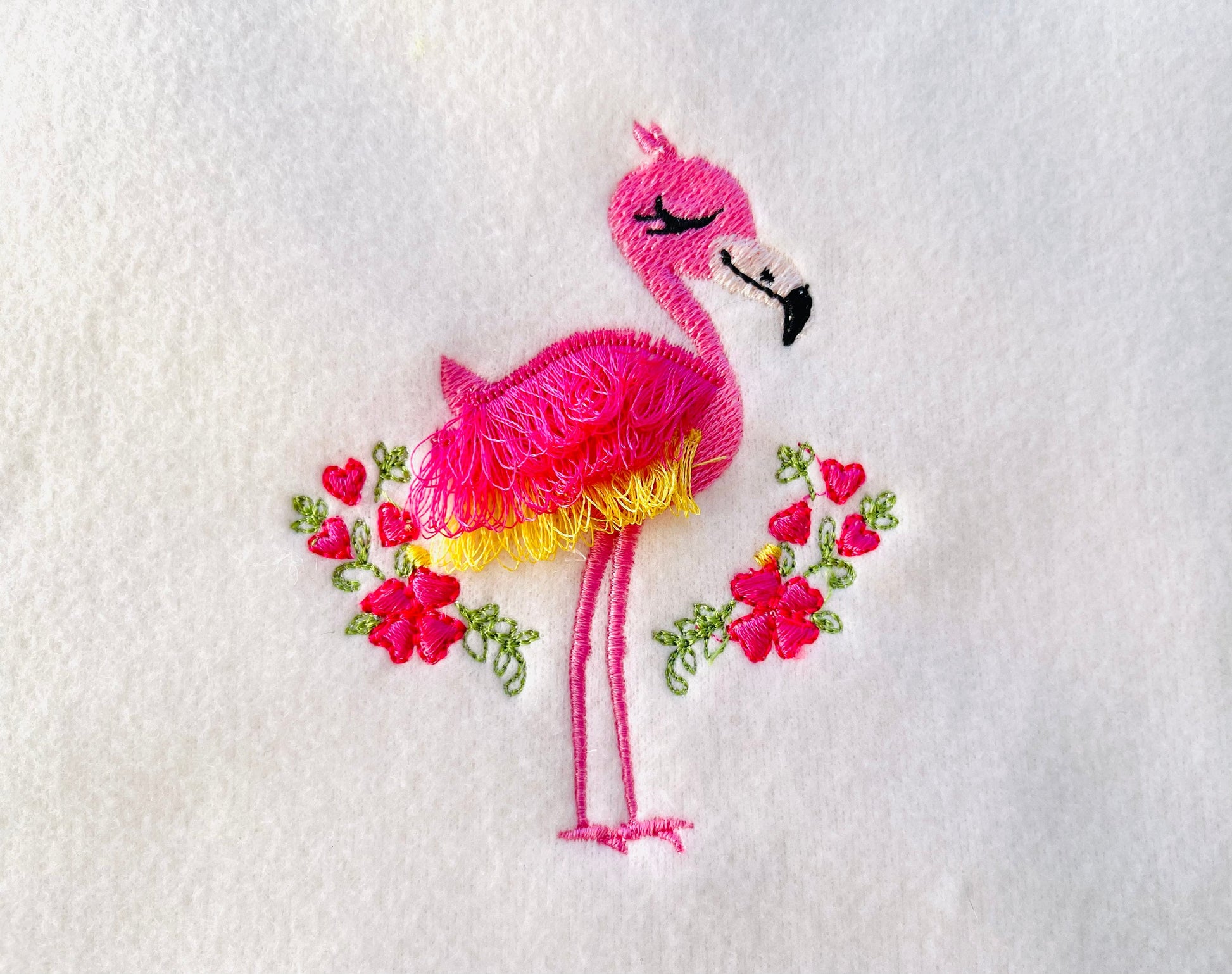 Simply Fluffy Flamingo in the hoop fringed fringe ITH project awesome machine embroidery designs 4 and 5 inches cute flamingo girl floral