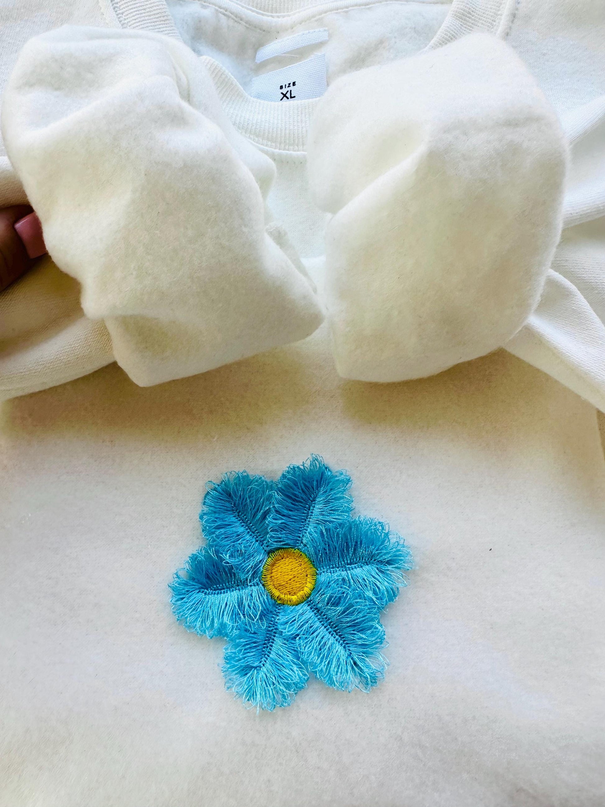 Single Daisy Fluffy fringed Flower Daisy floral fringe fur ITH in the hoop machine embroidery designs baby kids sizes 2 up to 3.5 inches