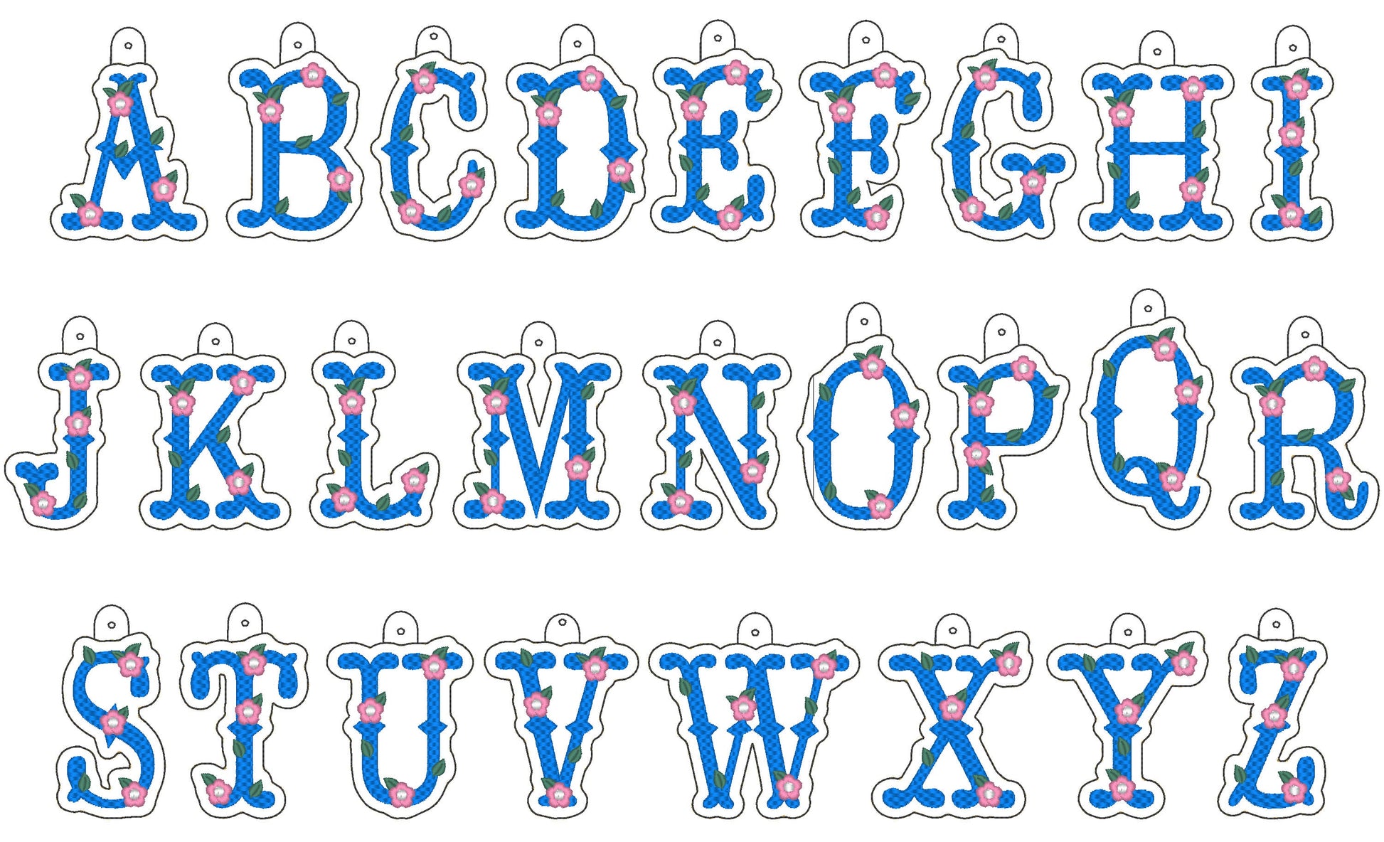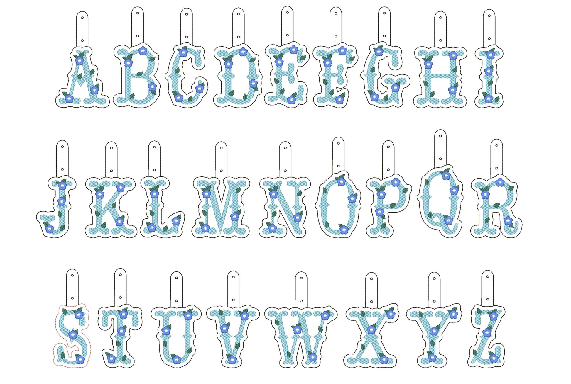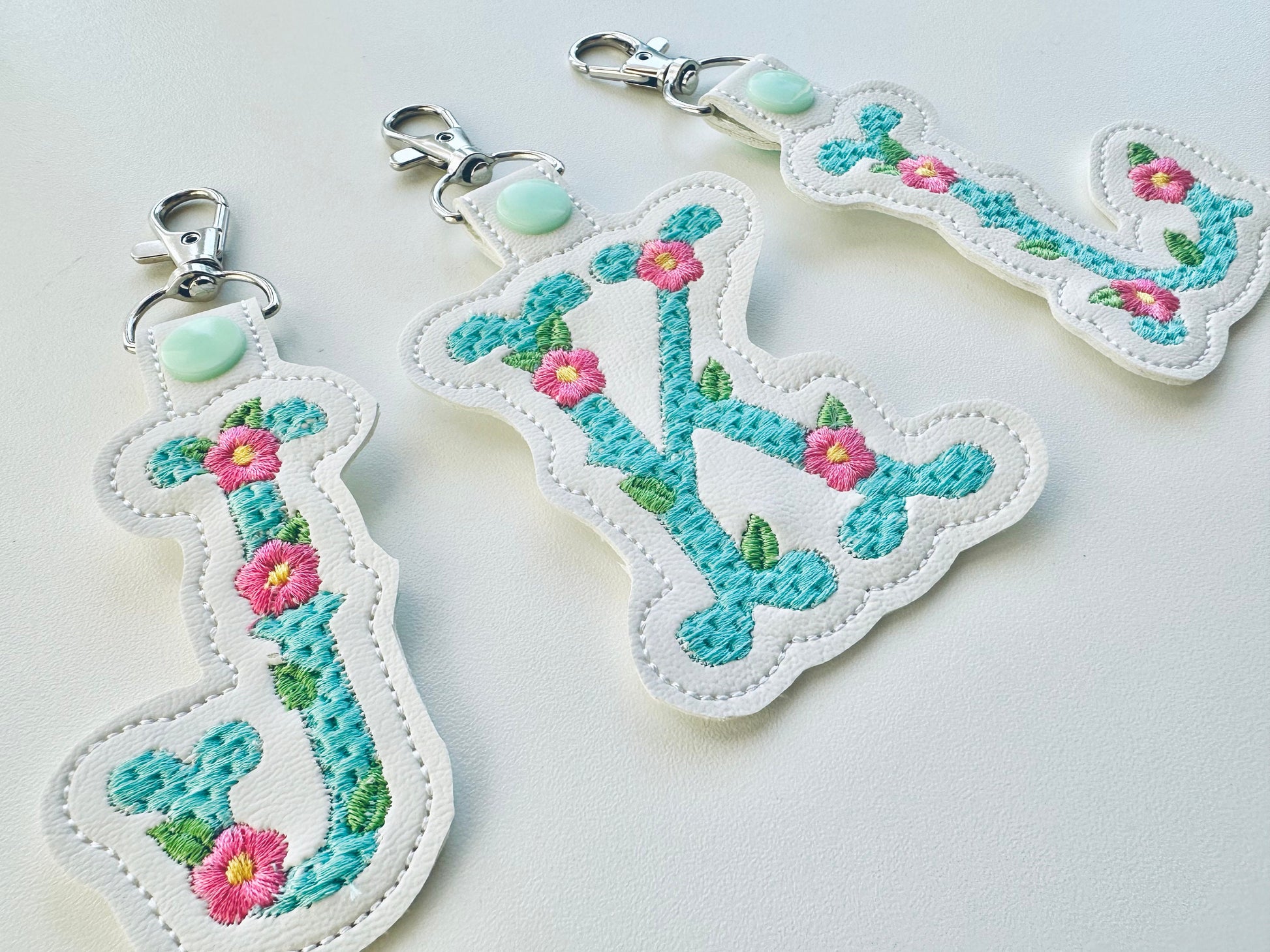 Small flower western cowboy Monogram keychain and eyelet gift tag letters A-Z key fob snap tab ITH machine embroidery designs Floral wedding Entire alphabet included