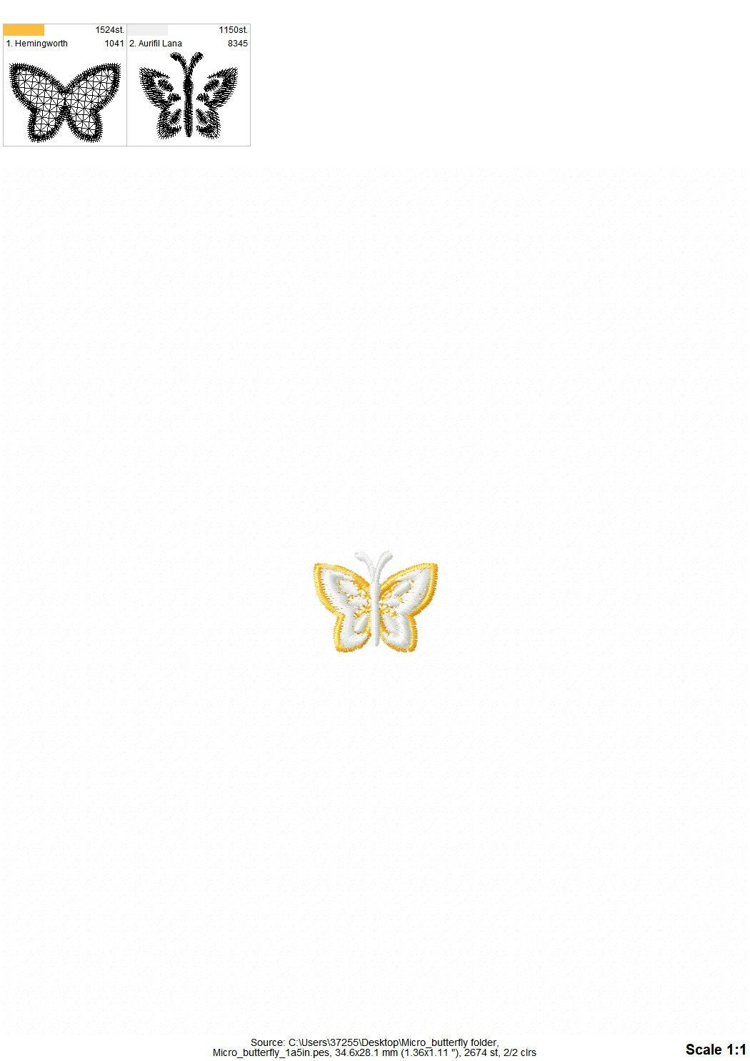 SMALL MINI FSL Lace Butterfly Free standing lace embroidery design in